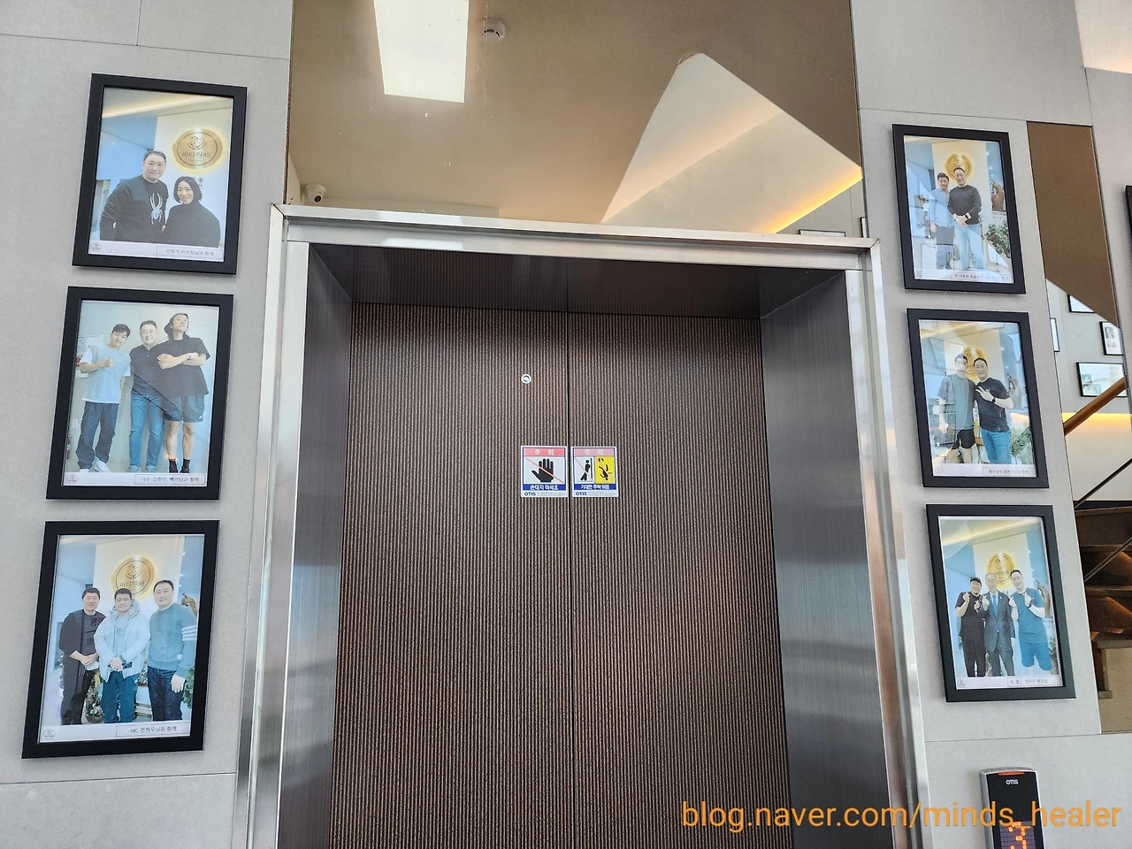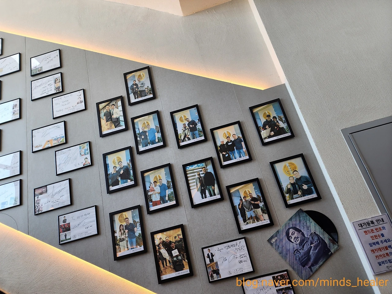 2층으로 올라가면 엘리베이터와 계단에 연예인, 운동선수, 산악인, 정치인 등 많은 유명인 분들과 찍은 사진이 있어요. 김종민 님, 빽가 님, 전현무 님, 리아킴 님, 축구선수 조현우 님 등 정~말 많았습니다.