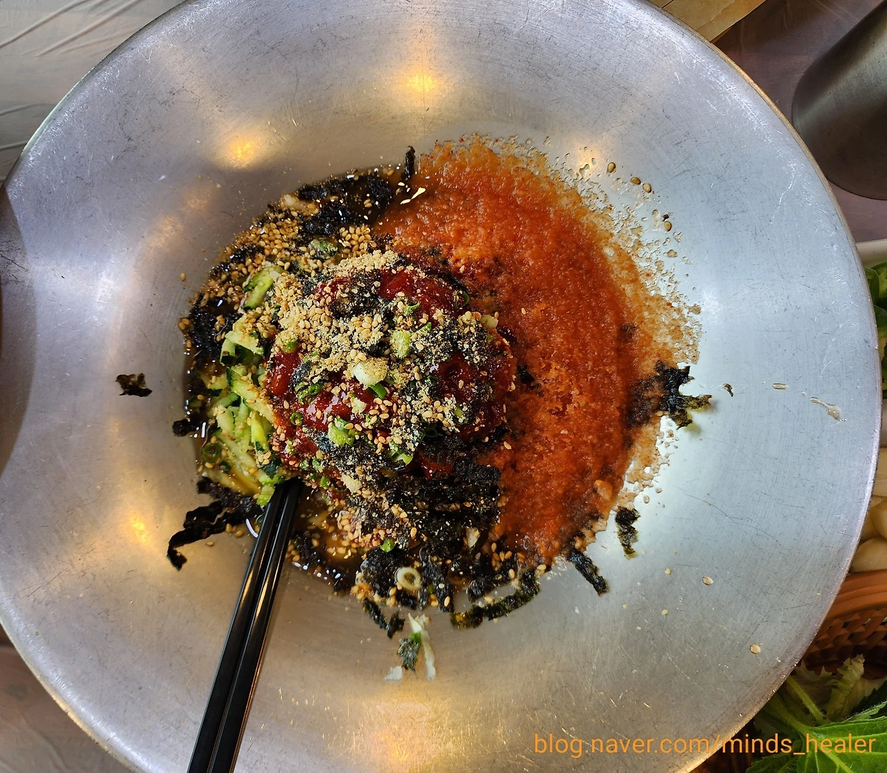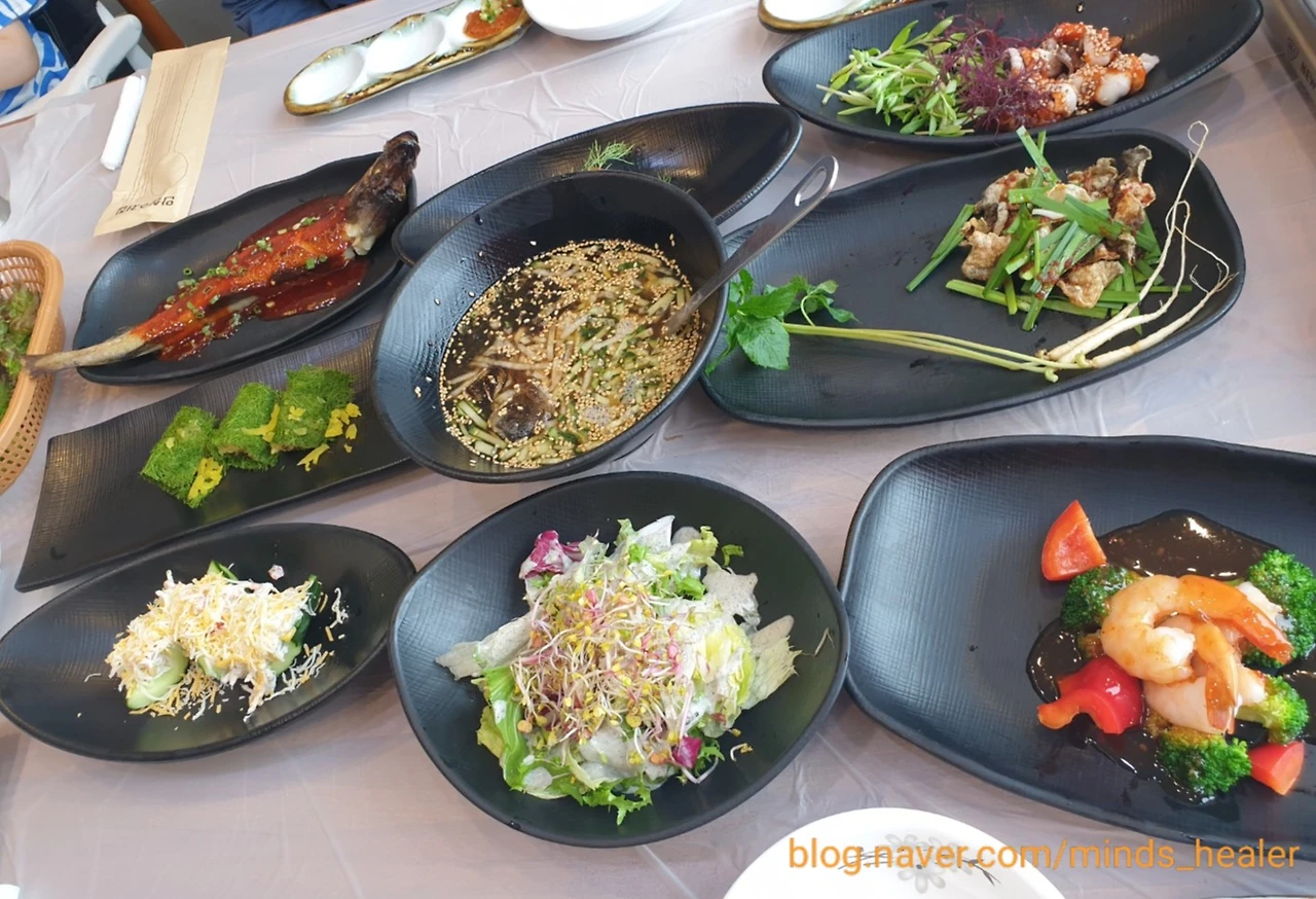 어쩔 수 없이 친정식구들 테이블에 ‘바다원해 회정식’ 3인 / 저희 테이블에 ‘포항물회 정식’ 2인 상차림으로 세팅했고, 덜어서 나누어 먹었답니다. 혹시나 저희와 같은 생각을 하신 분들이 계신다면 참고하고 방문하셔요^^ 계획대로 되지 않아 아쉬웠지만, 여러 가지를 맛볼 수 있어서 좋았어요.