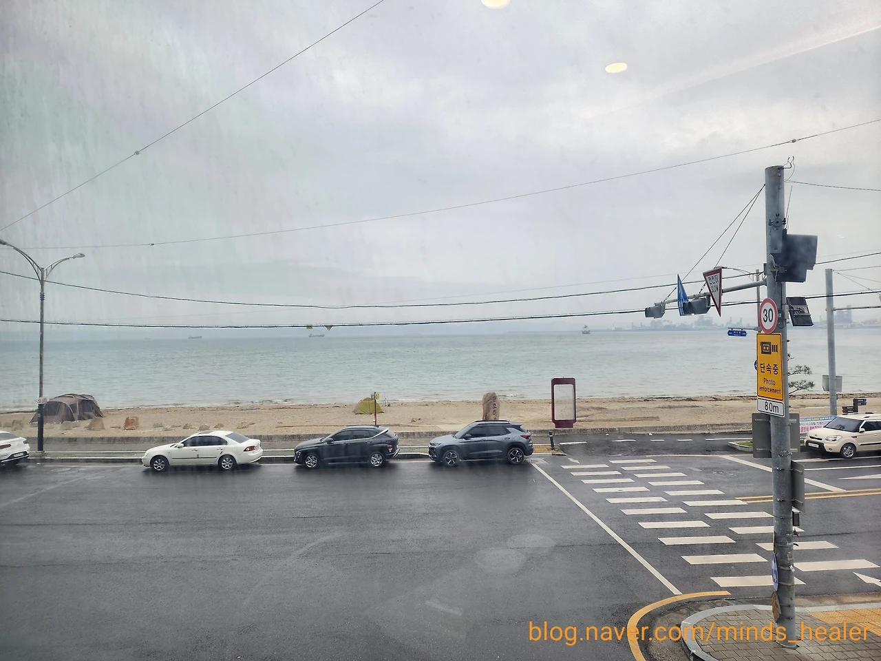 비가 와서 흐린 모습이 찍혔지만, 오션뷰 방이라 친정식구들이 좋아했답니다.