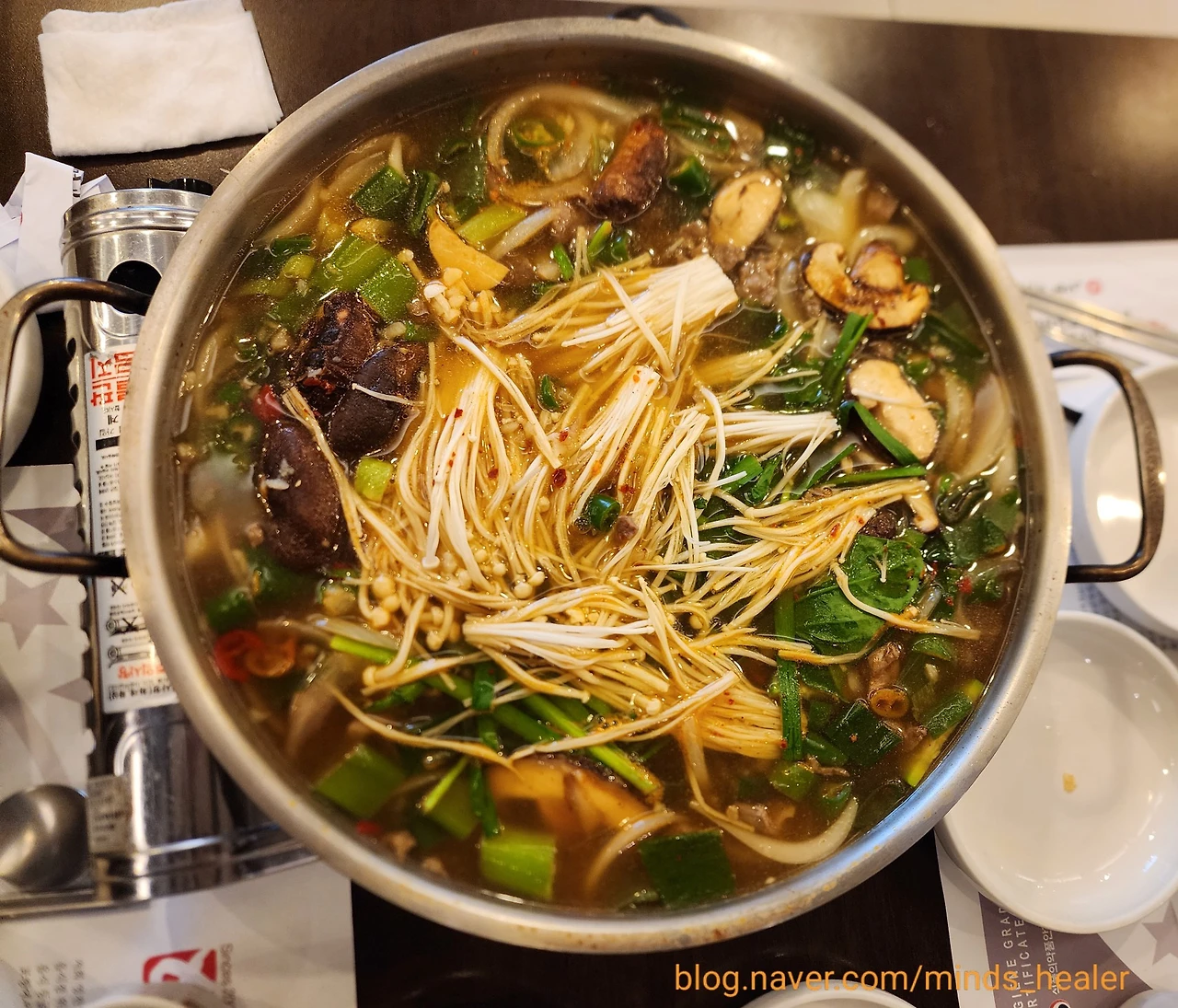 들어가는 고기가 맛있으니, 국물맛도 일품이었어요^^ 고기맛이 진하게 우러나온 데다 여러 버섯과 야채들이 맛을 깔끔하게 잡아주었습니다! 돌잔치를 앞두고 체중 관리하려고 국물은 많이 안 먹으려고 했는데, 어쩌다 보니 국물에 자꾸만 손이 가서 결국에는 싹싹 긁어먹고 왔어요. 맛있게 먹었으니, 또 열심히 관리해 볼게요^^