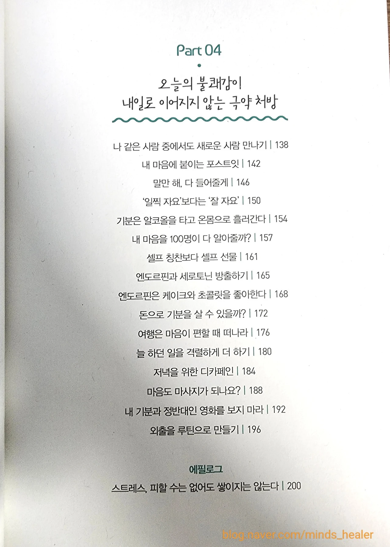 “이 책을 통해 올바른 스트레스 해소법을 전할 수는 있지만, 그것을 실천할지 말지는 여러분에게 달려 있습니다.” p. 11