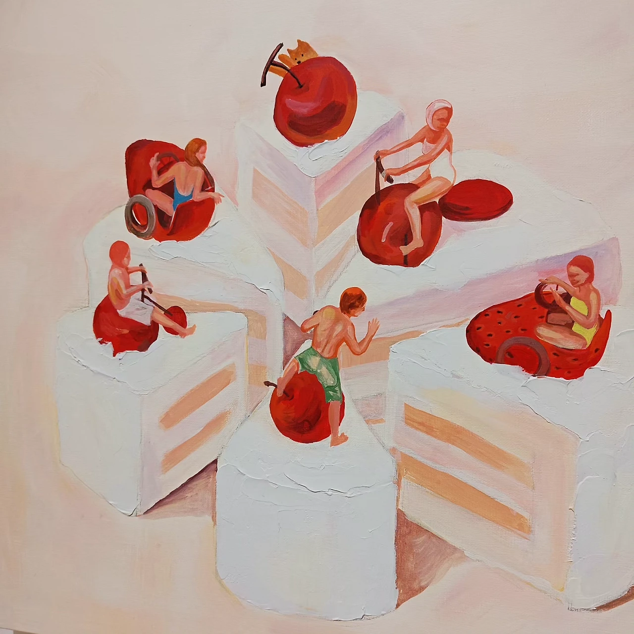 케이크 위 체리를 마치 놀이 공원 범퍼카의 운전대처럼 또는 장난감 자동차처럼 가지고 놀고 있는 자유로운 사람들의 모습을 보니 미소가 절로 나온다.