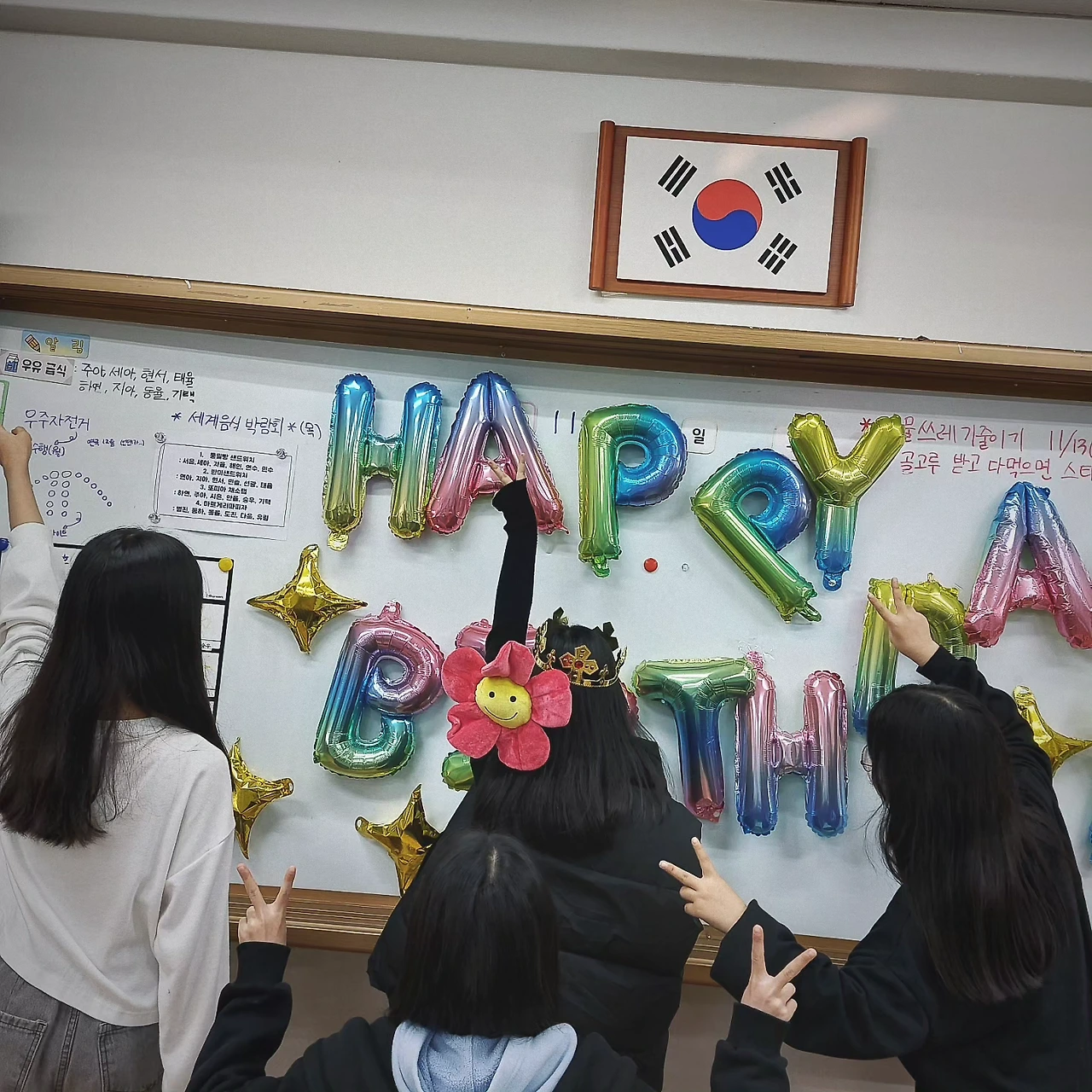 맞아! 진짜 깜짝 파티 계획 세우고 함께 준비하느라 고생 많았겠네! 교실도 참 잘 꾸몄지만 영어쌤 눈에는 너희 반 담임쌤을 생각하는 너희들의 이쁜 맘이 더 예뻐 보인단다!