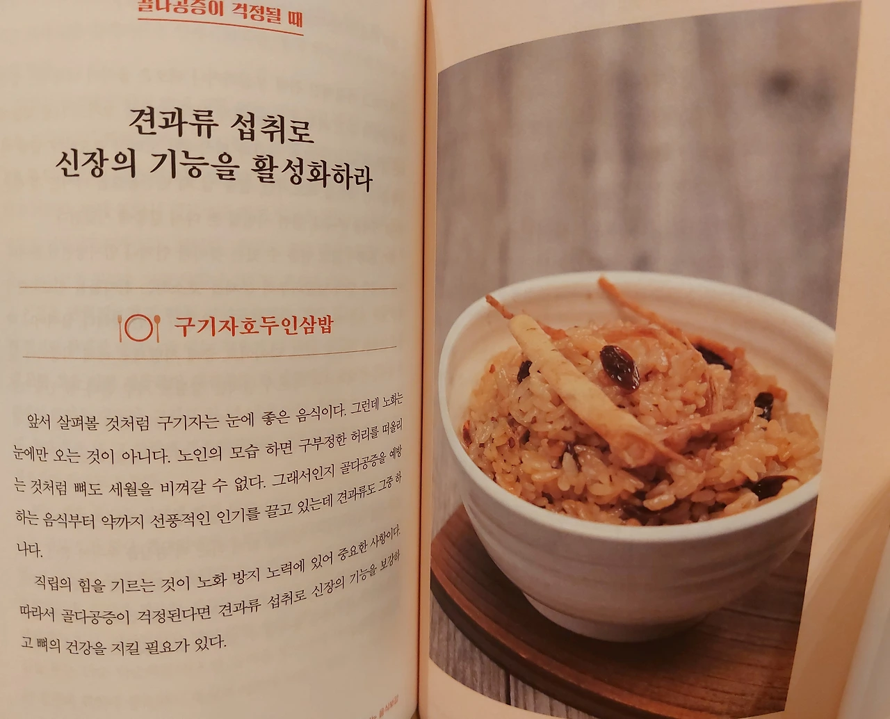 호두 등의 견과류가 신장에 좋다는 사실도 알게 되었다. 직립의 힘을 기르는 것이 노화방지에 효과적이라는 것도 배운다.