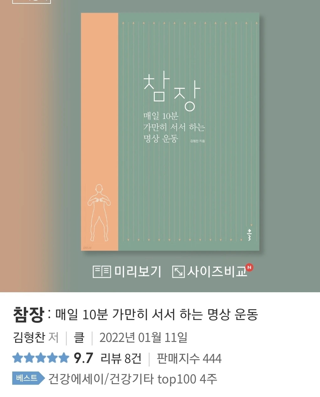 올 초 태극권에 대해 관심을 갖고 문헌과 참고도서를 찾다가 한의사 김형찬 선생님께서 지은신 '참장'이라는 책을 알게 되었다. 동양 의학을 전공하신 한의사분이 쓴 책이어서 그런지 태극권의 꽃 '참장' 동작이 가지고 있는 건강상의 이로움에 대한 설명을 보고 이거다 싶었다. 내 평생운동은 이걸로 결정! 그리고 바로 태극권을 배울 수 있는 곳을 수소문했다.