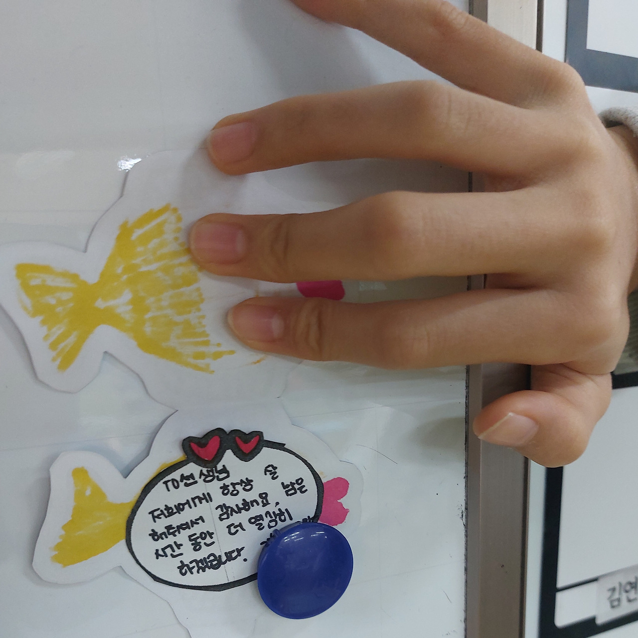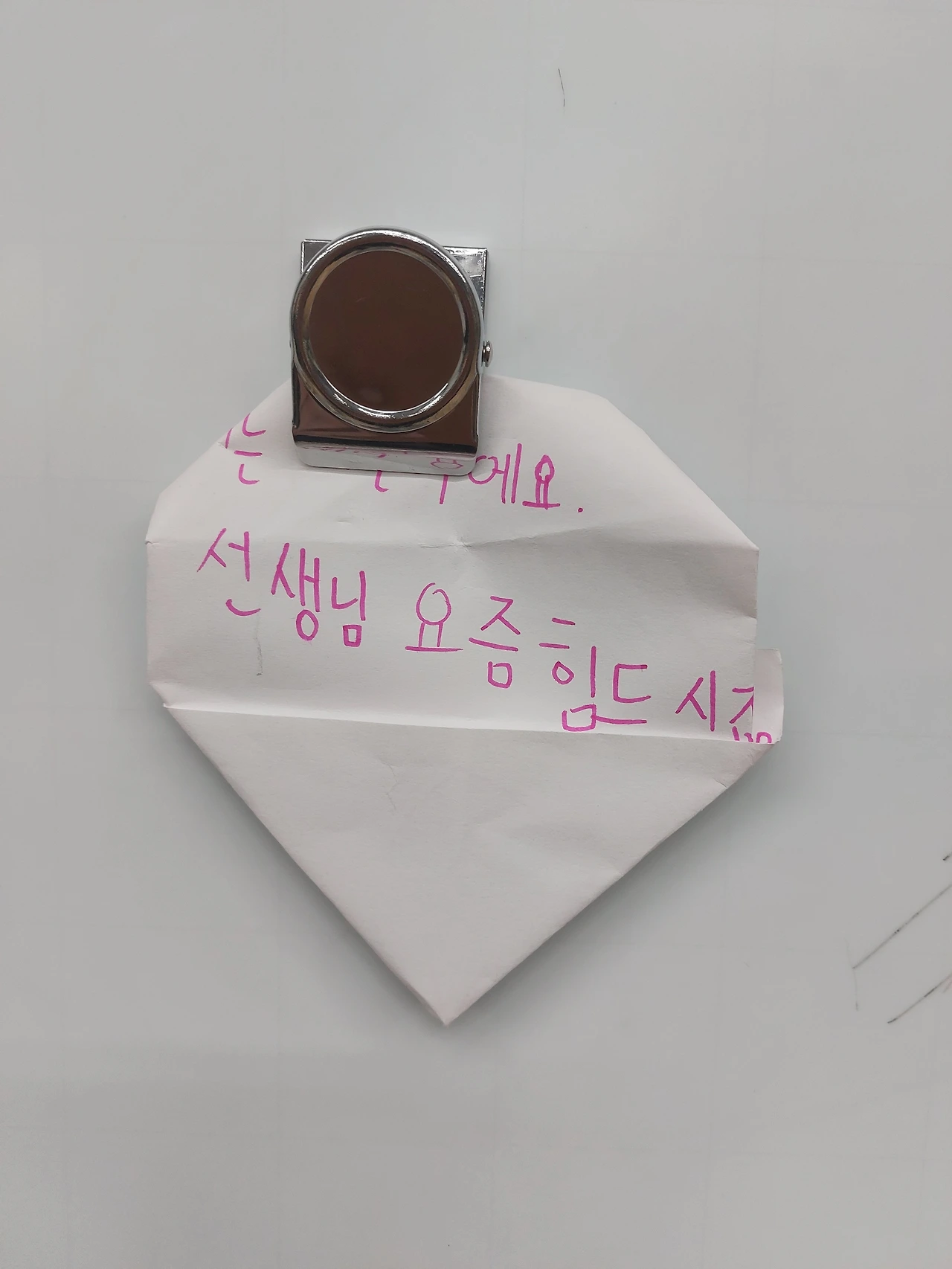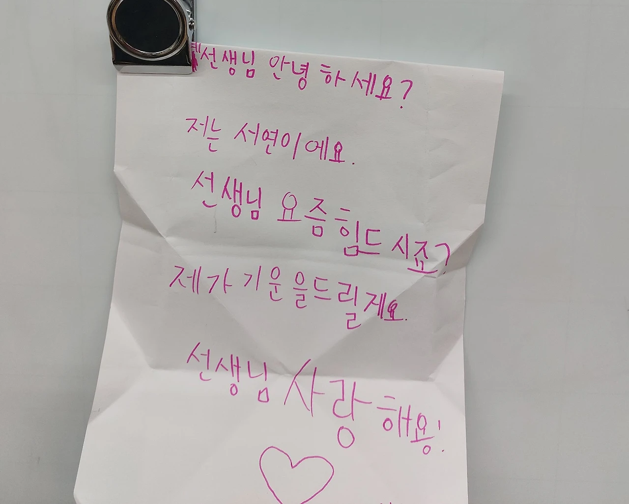 정을 느끼고 나누는 과정은 돈으로 살 수 없는 행복을 느끼게 해 준다. 결국 나는 다정함에 승복한다. 우리 교과실의 금손 선생님의 그림에도 탄성을 지른다. 작은 메모지 하나의 예쁜 글씨체와 그림에도 감동하는 내 모습이 참 좋다.