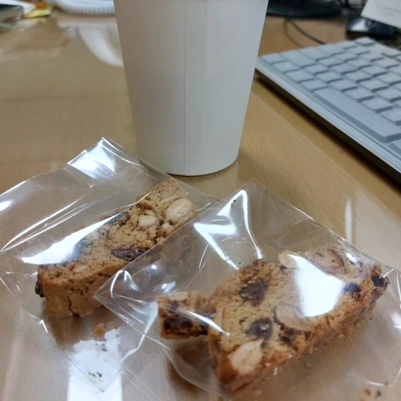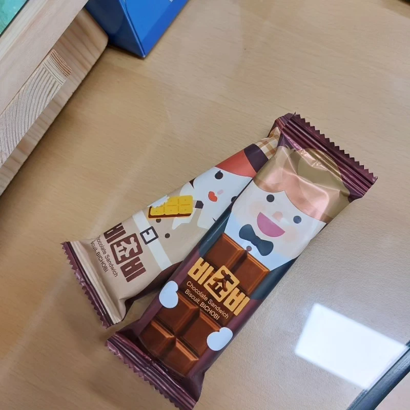 우리 교과실 구성원들은 모두 빵과 과자를 너무나 좋아한다. 아침에 출근하면 이렇게 귀엽고 예쁜 간식이 책상 위에 수줍게 놓여 있다. 빈츠와 다이제스티브에 이어 새로운 초코 강자가 나타났다. 저 과자 진짜 초코가 통으로 씹힌다.