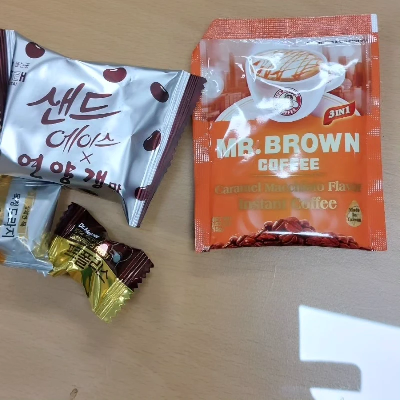 또 다른 쌤은 고향집이 대전이라 그 유명한 성심당 나비파이와 순수 롤케이크를 사다 주셨다. 확실히 유명 제과점의 인기 품목은 입에 넣자마자 사르르 녹아버렸다. 진짜 안 달고 부드러운 맛과 풍미. 함께 먹으라고 주신 저 고급스러운 봉지 커피까지 센스가 만점이다.