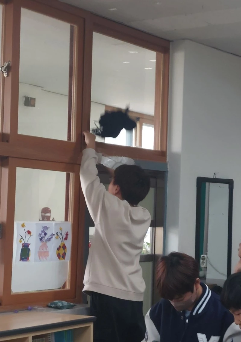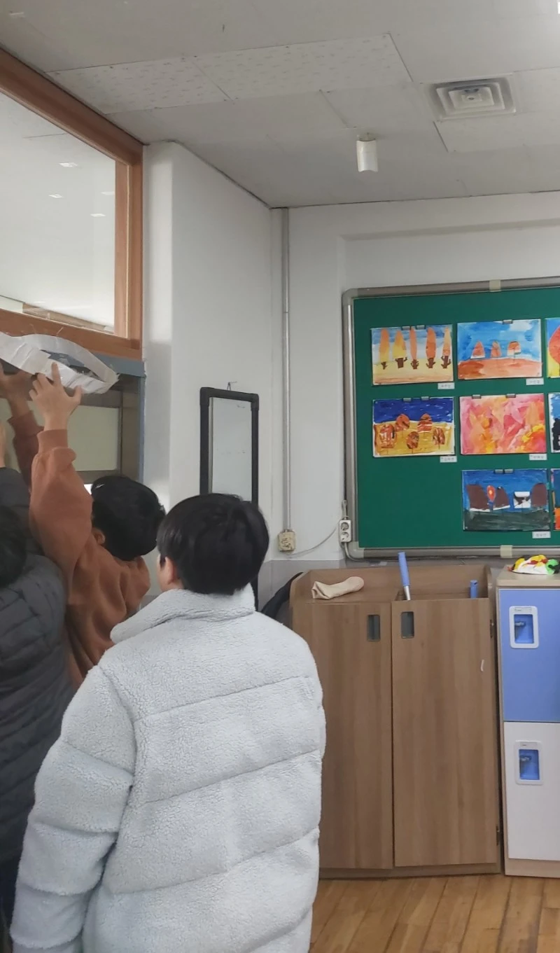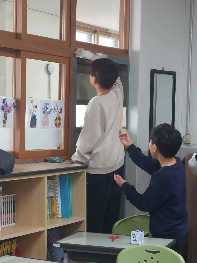 바라만 보고 있어도 미소가 나오는 아이들이 있다. 교실에 있는 이면지 재활용 상자에서 종이를 주워다가 농구 골대를 만들어 엄마가 챙겨준 핫팩으로 농구 놀이를 하는 귀염둥이들!