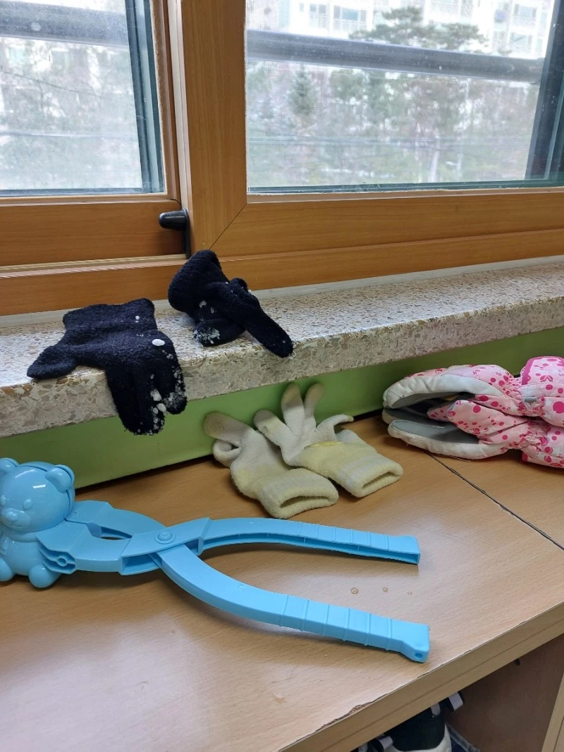 아이들이 벗어놓은 장갑만 보아도, 눈 때문에 흥분했을 아이들 다치지 않을까 노심초사하셨을 담임 선생님들 생각에 마음이 짠해진다. 아이고, 선생님요, 진짜 고생 많으셨습니다.