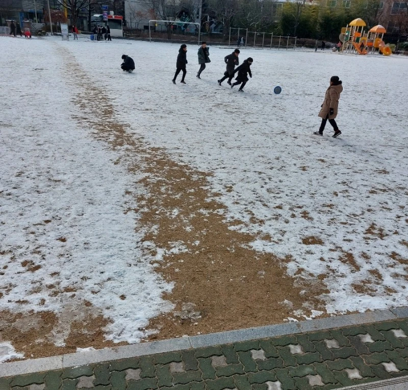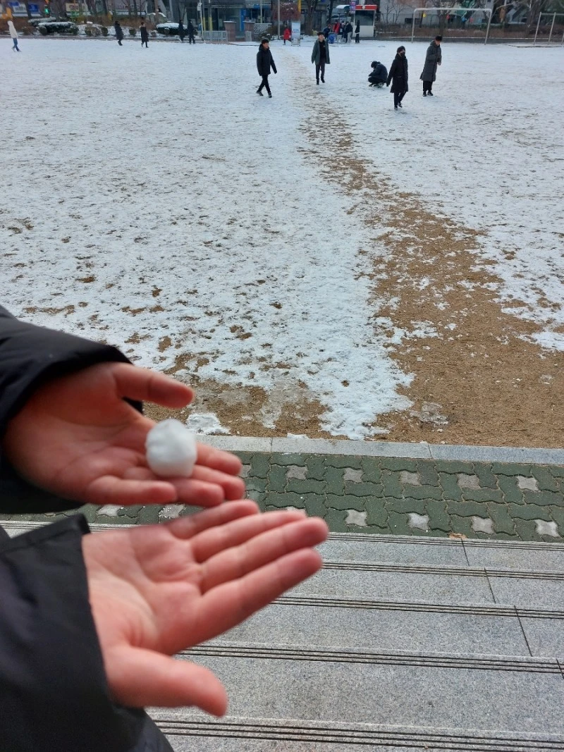두툼한 귀마개, 눈싸움 흔적이 흥건하게 남아있는 물방울 가득 장갑들, 하루 종일 얼굴이 벌게지도록 눈밭에서 축구를 하고 눈싸움을 하는 아이들 모습에 빙그레 웃음 짓게 되는 날이다.