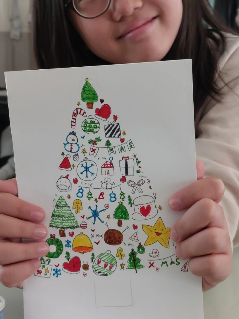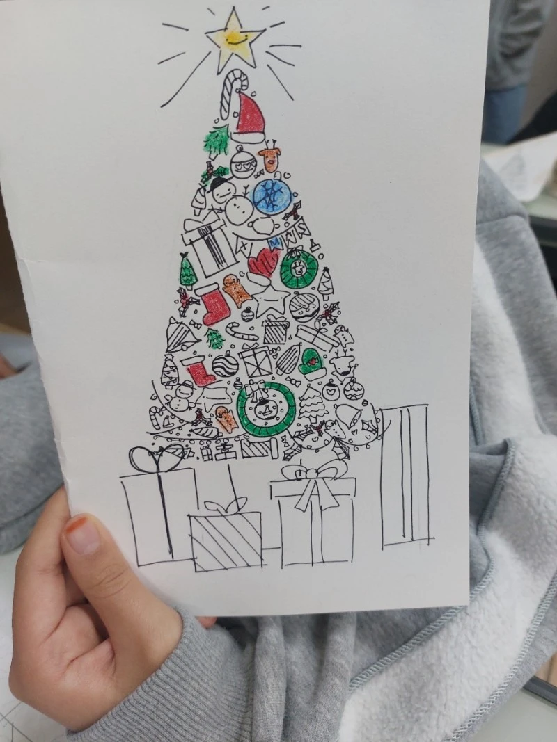 내가 유달리 사랑하는 우리 친구, 센스 만점 문구에 넋이 나간채 사진을 찍는다. 이런 아이와 함께 공부할 수 있다는 건 진짜 행운인 거다. 남학생이 이리 따뜻하기가 참 어려운데, 공부도 잘하는 우리 학생은 마음결도 비단결, 아, 운동도 정말 잘한다. 글씨체까지 이쁘다니, 그림실력은 또 어떻다고! 영어 수학도 일등, 예체능은 기본인데, 사회성과 인품까지 최고란 말이지! 트리를 그리는 저 섬세함을 보라!