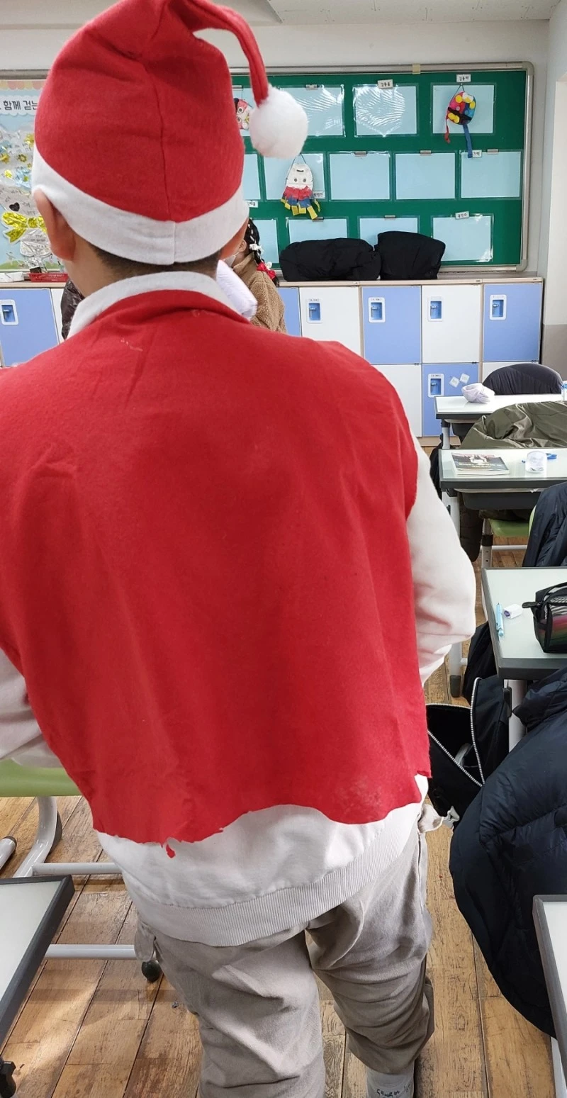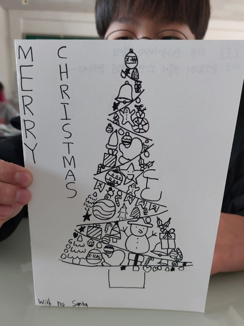 '호호호, 사실 산타 할아버지는 없어요. 자고 일어났더니 선물이 있으면 부모님을 안아주세요~' 동화보다 더 예쁜 카드 속 문구에 얼른 카메라를 꺼낸다. 이제는 아이들이 내게 빨리 사진 찍으라며 제보도 한다. "쌤, 저건 꼭 찍으셔야 합니다." 그치? 어머, 이게 무슨 일이야. 너 찐 천재 같아!