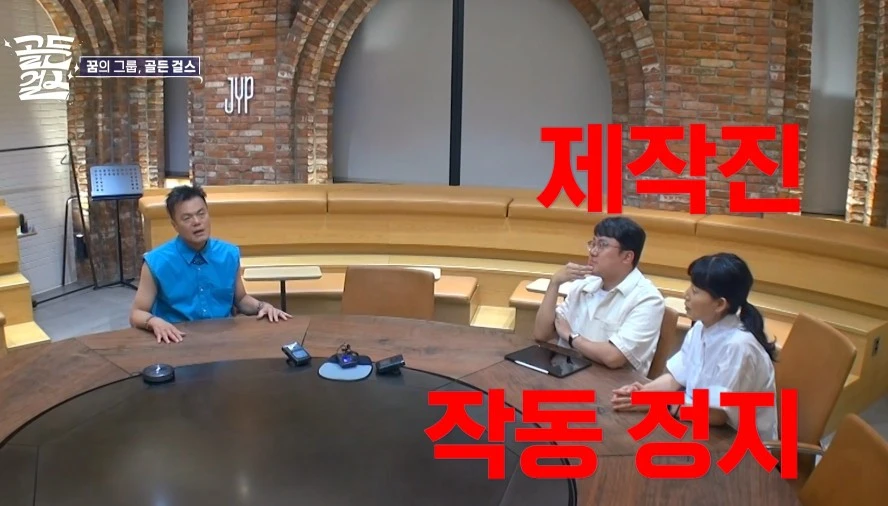 "그분들이 하신대요?"라는 질문에 박진영 씨는 "아직 안 물어봤어요. 그런데 그 누나들이 모두 다 나를 예뻐해요." 캐스팅은 자신 있다는 박진영 님의 호기로운 답변. '아니 인순이 같은 분들이 뭐가 아쉬워서 이걸 해?' 하는 제작진의 뜨악한 표정과 들뜬 목소리의 그의 표정이 대조를 이룬다.