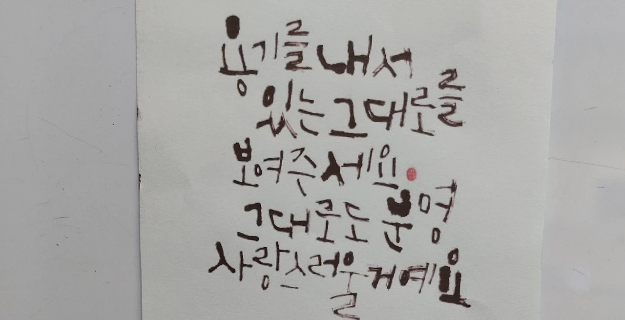 '공명하는 자아 목격자'는 내가 존경하는 선생님의 형상을 하고 있을 수도 있고, 나의 할머니의 모습을 할 수도, 반려견이 될 수도 있다. 눈을 감고 호흡을 하며 나의 자아 목격자가 어디에 위치하고 있는지 그 몸의 느낌을 기억하고 싶다. 나를 질책하고 비난하고 힐난하던 '내 안의 나'에서 벗어나야지. '살아온 삶을 추수하는 것은 내일의 삶의 지지대가 되는 것'이라는 강사님의 말씀이 참 마음에 든다.