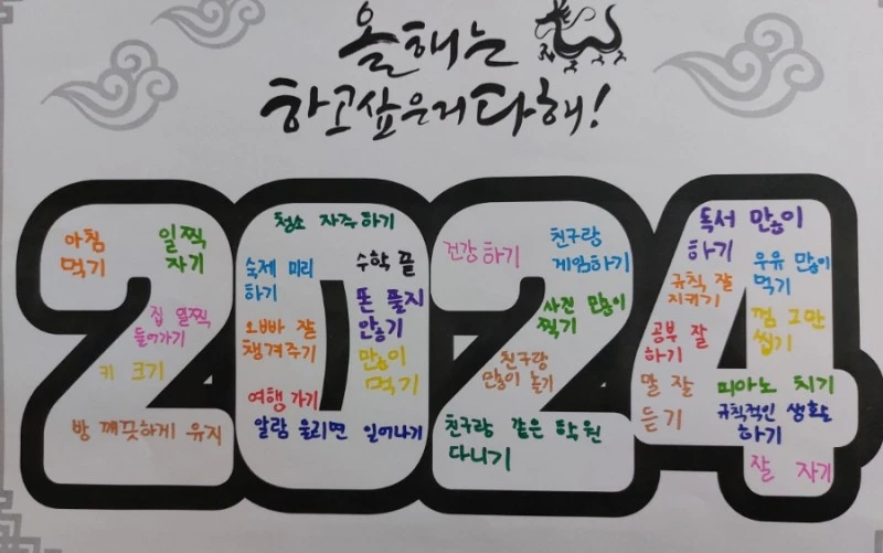5학년 어린이들이 작성한 새해 소원을 보니 참 재미있다. 오빠 잘 챙겨주기, 너무 스위트한 여동생이다. 청소 자주 하기, 방 깨끗하게 유지하기, 알람 울리면 일어나기, 어쩌면 이리 예쁠까?