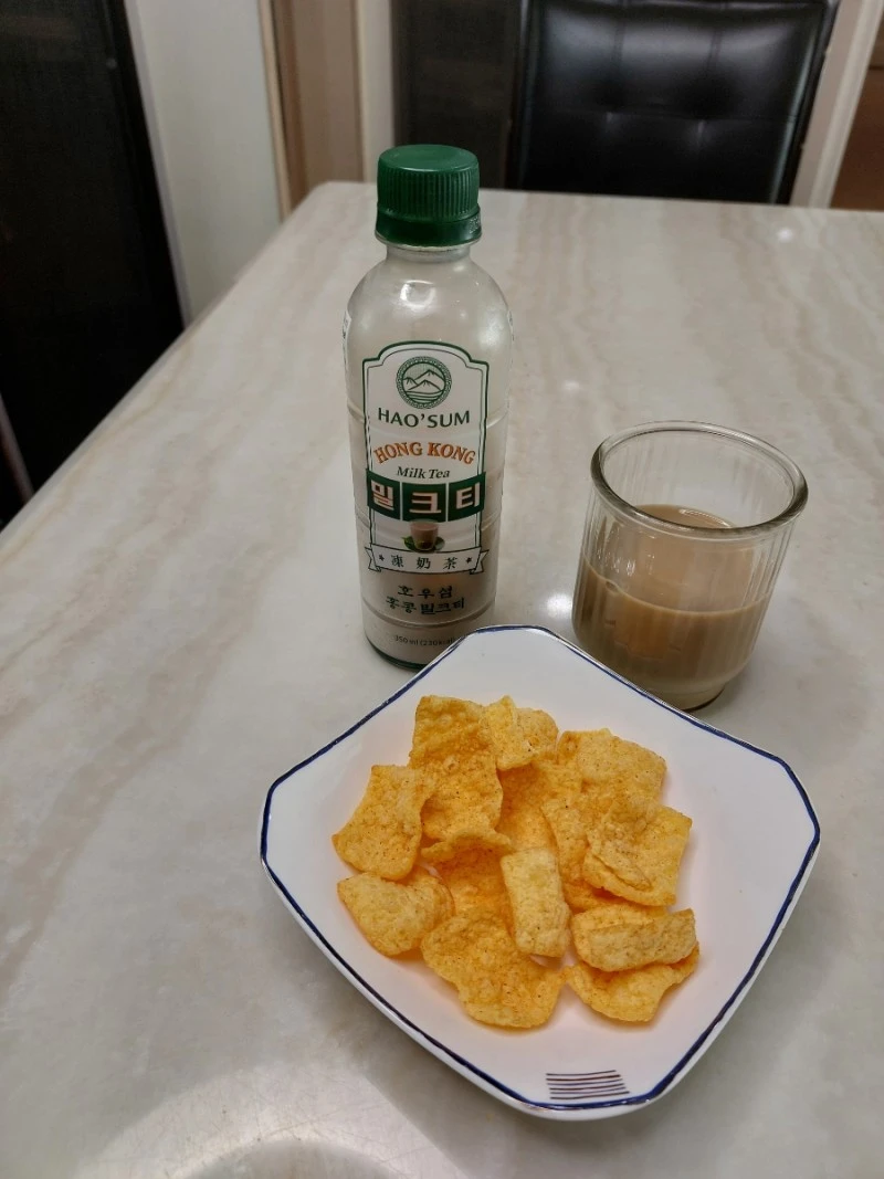 일단 호우섬 밀크티는 단맛이 무척 강하다. 그리고 진한 홍차의 맛이 묵직하게 치고 올라온다. 단맛을 우유가 잡아주며 발란스가 좋다. 시중에 파는 RTD 드링크 류 밀크티 중 단연 최고다. 이제는 과자를 시식해 볼 차례!