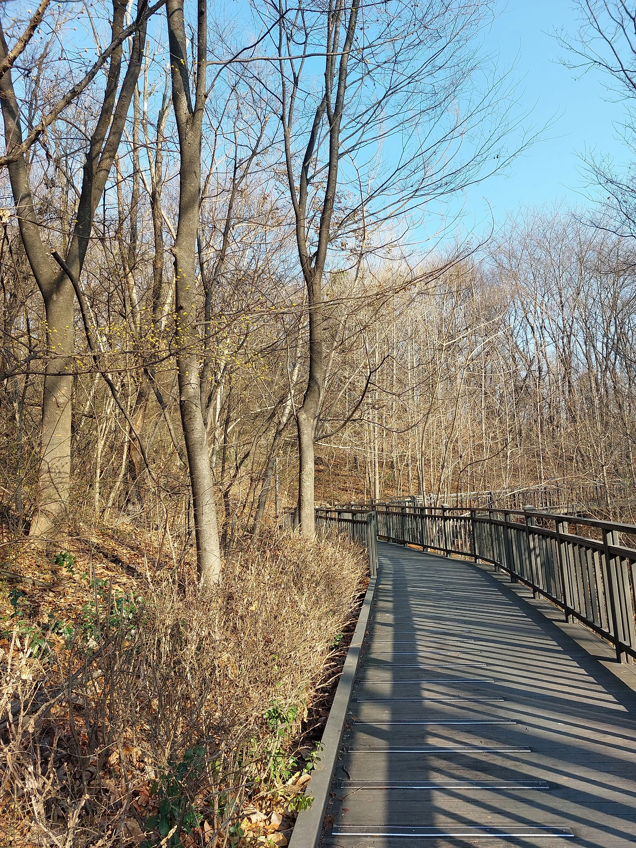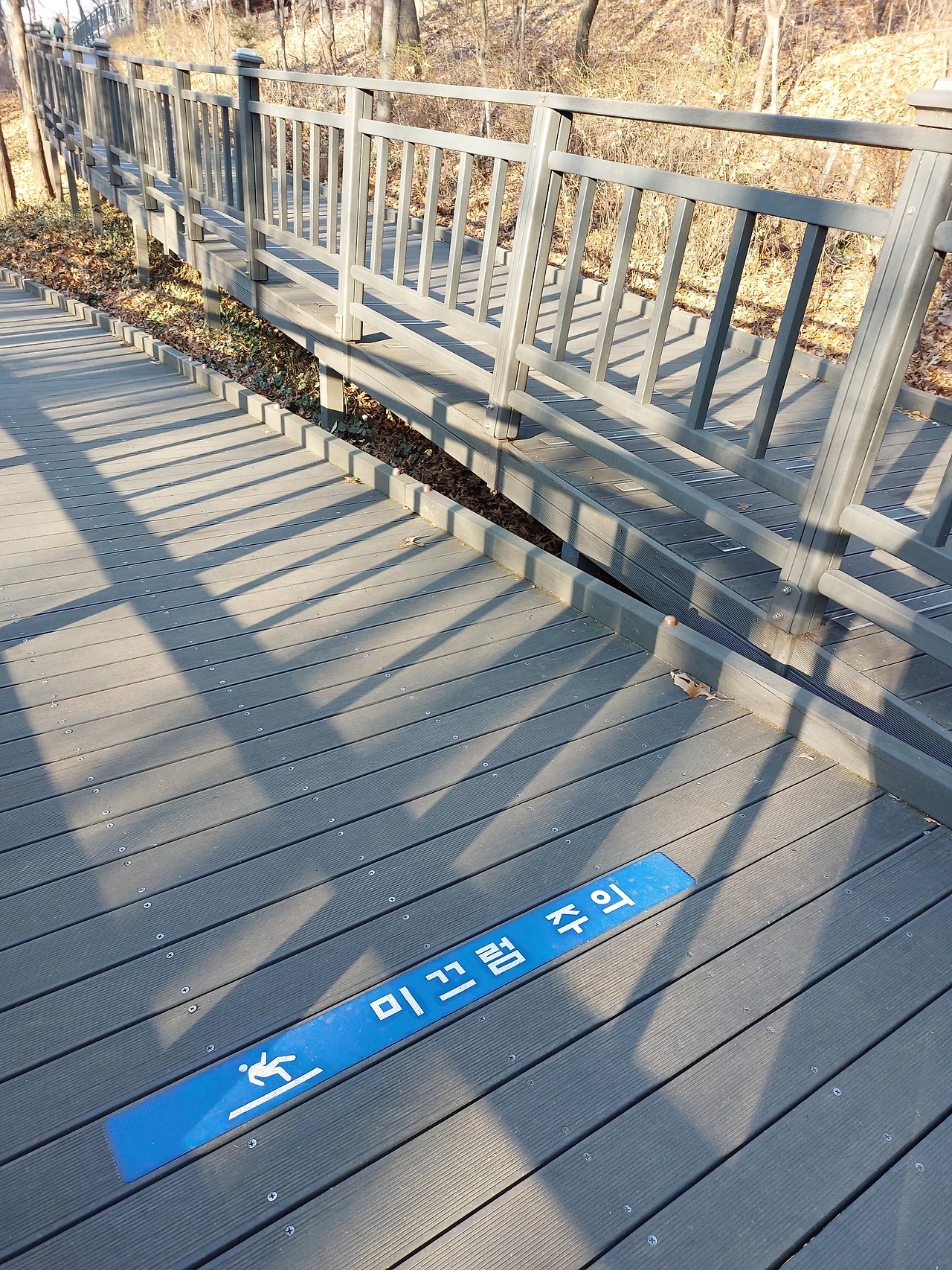얼마 전 아침 바쁘게 발걸음을 옮기다 사고가 났다. 산책로 데크 입구 어린이 놀이터 우레탄 부분에서 순식간에 미끄러진 것이다.