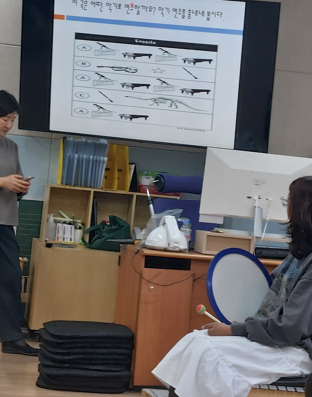 말리듬을 어떻게 음표로 연결시키는지, 일정박과 빠르기의 관계, 다양한 오르프 악기에 대해 알아 보는 시간이었다.