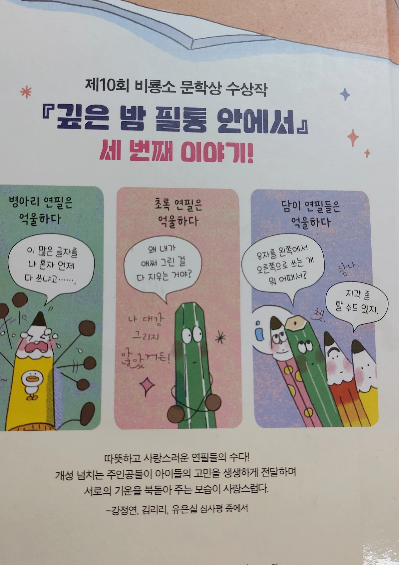 주말동안 낄낄대며 본 책 '깊은 밤 필통안에서'. 제10회 비룡소 문학상 수상작이다.