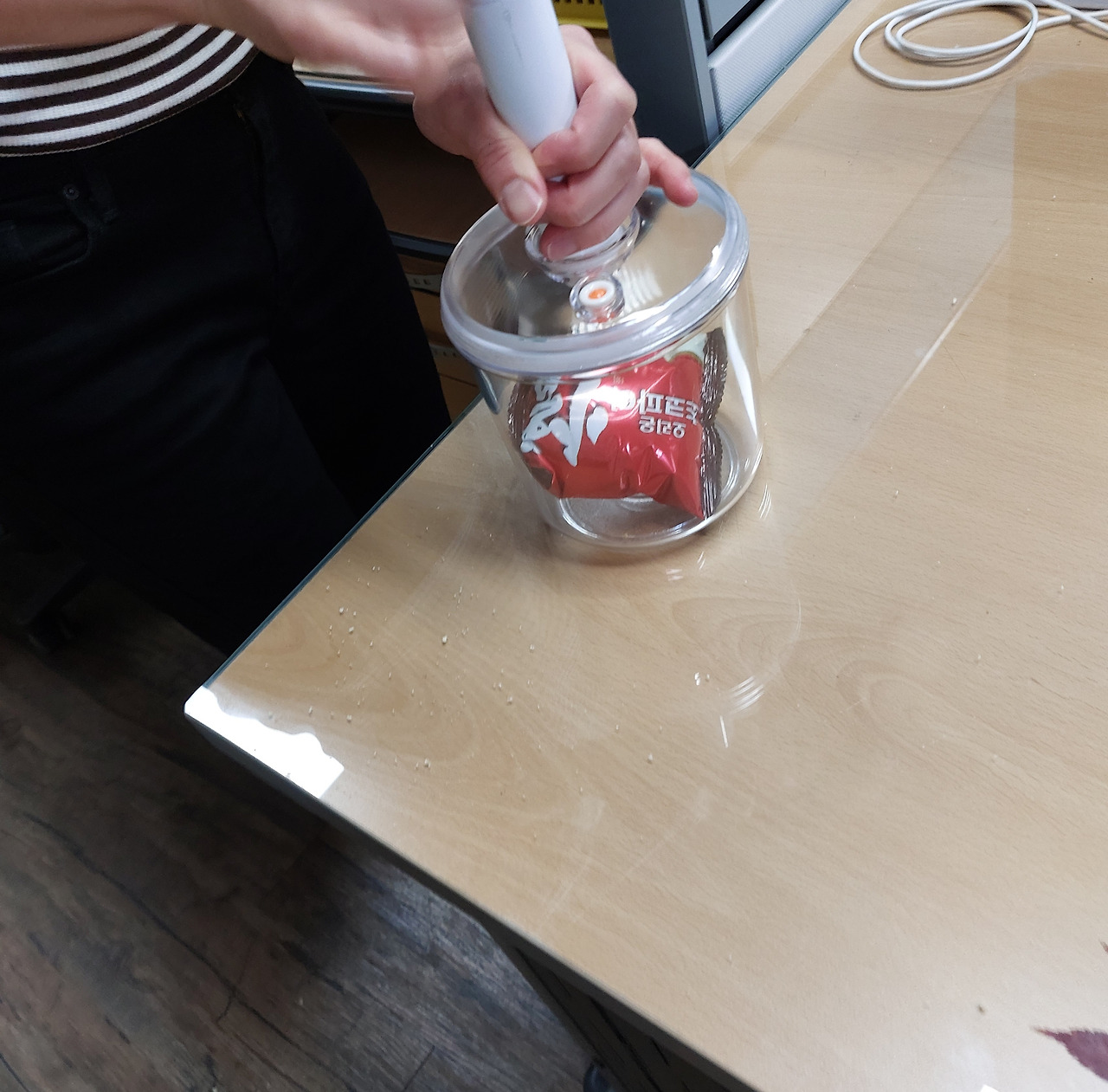 "애들은 이것보다 두 배는 더 크게 만들더라고요." 오늘 우리 과학 선생님의 준비물은 초코파이 200개와 마시멜로 대용량 봉지 4개, 그리고 감압기이다.