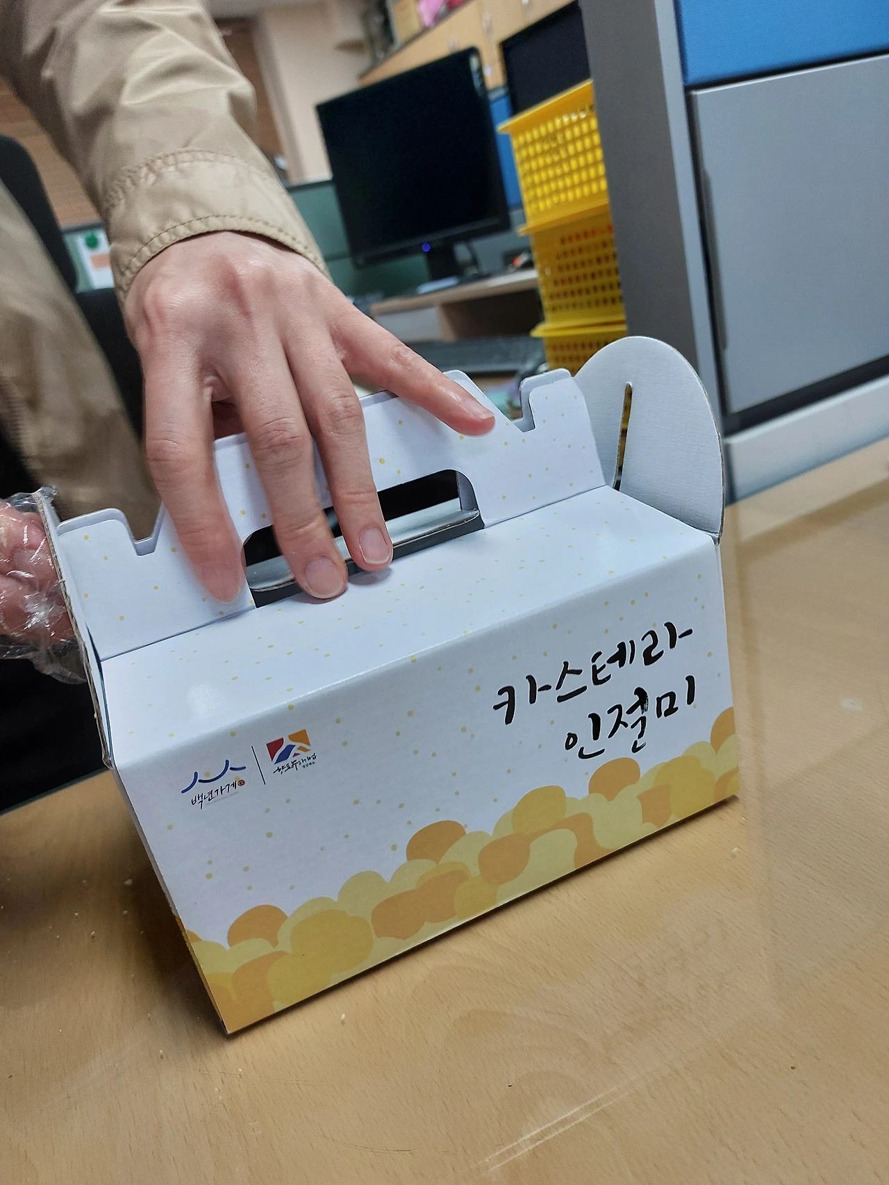 우리들 맛있는 특산품 주신다고 영주 카스테라 인절미까지 챙겨 주신 정성! 이야, 이거 진짜 살살 녹는다. 태극당 인절미 진짜 맛있다.