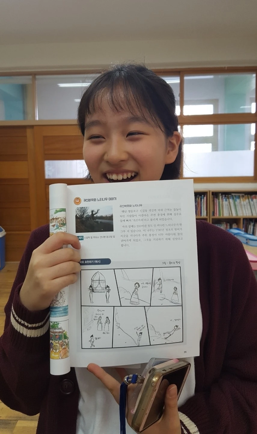 '우리 고장의 문화유산' 지역화 교과서에 네 글과 그림으로 우리 동네를 소개했던 자랑스러운 옛 추억이 함께 떠오르는구나! 멋쩍은 표정으로 자신의 쓴 글과 그림을 들고 있었던 너, 이때가 아마 중학교에 바로 들어간 해 스승 의 날이었을 거야. 그치?