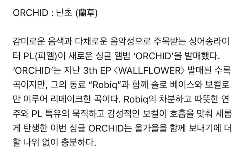 곡 제목은 오키드, 우리말로 '난초'다. 가수 이름은 PL, 인디가수인가 보다. 가사도 멜로디도 노래하는 목소리도 아름답다. 일단 가장 옆에 있는 리코더를 잡아본다.