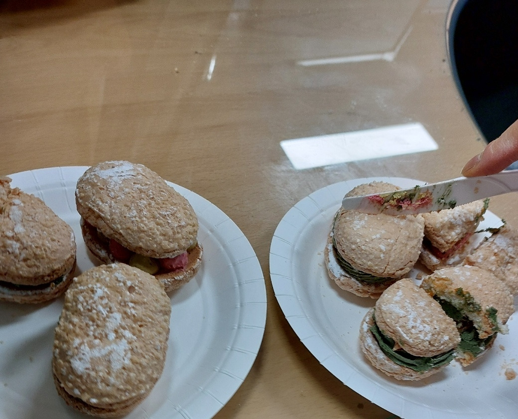 너무 재미있게도 쌤들 모두 두 손 가득 먹거리를 챙겨오셨다. 자기가 아는 제일 진기한 아이템을 골라와 펼치는 맛의 향연이다. 안동 명물 사과잼 파이, 꾸덕꾸덕한 바스크 치즈케이크, 앙증맞은 치즈 만주, 아몬드 송송 박힌 신개념 과자, 나폴레옹의 레몬 파운드케이크, 풍년제과 초코파이세트 등등. 여기가 진정 빵부페일세! 이 사람들 진짜 디저트에 진심이다. 맛있는 것을 함께 나누고 싶은 마음, 우리는 이걸 '애정'이라고 부른다.