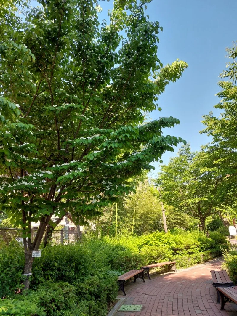 관심조차 없던 식물에 애정이 생긴 것이다. 아래에 있는 꽃 역시 마찬가지다. 길을 가다가 우연히 검색하여 알게 된 꽃, 산딸나무다.