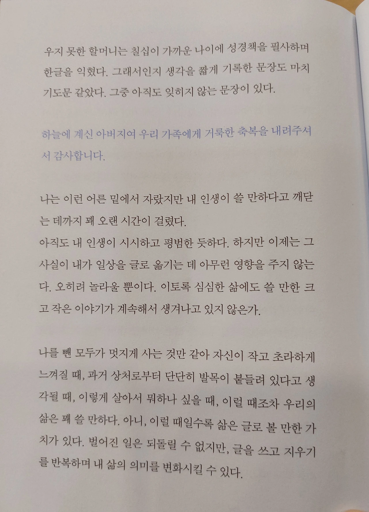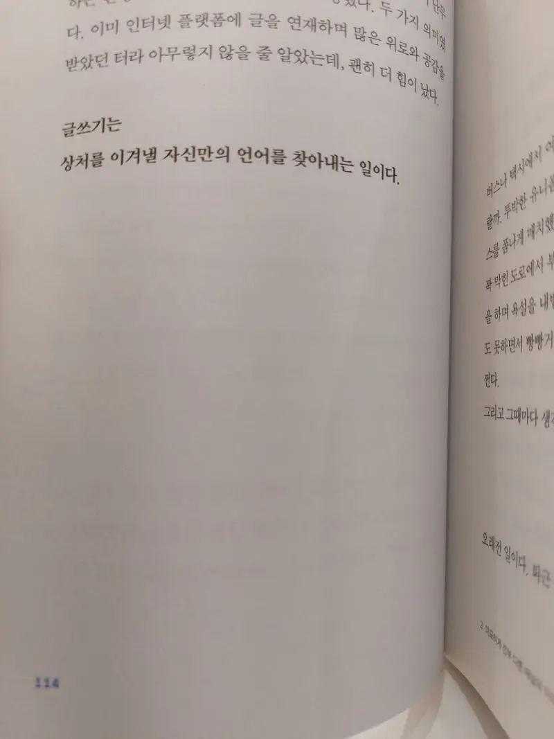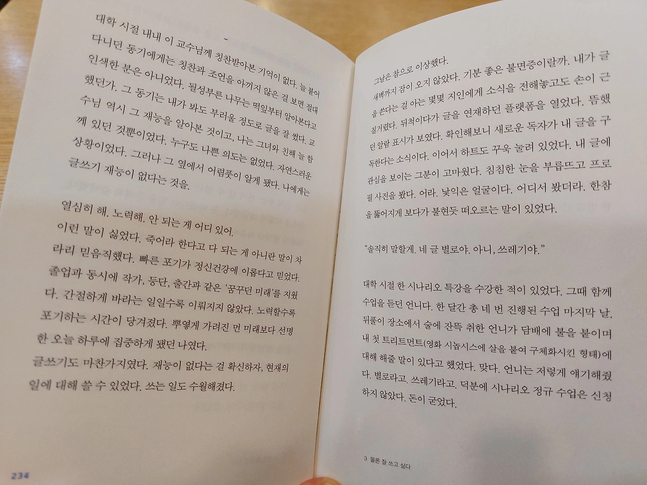 술술 넘어가는데 어흑흑 폐부를 파고든다. 글쓰기는 상처를 이겨낼 자신만의 언어를 찾는 일(p.114)이라는 문구를 본 후 앞으로 이하루 작가의 모든 책을 읽겠다고 다짐했다.
