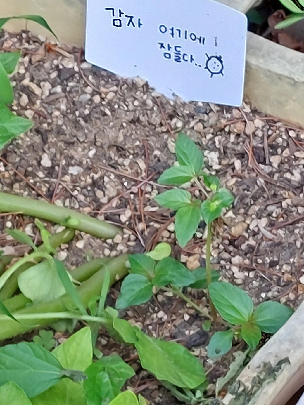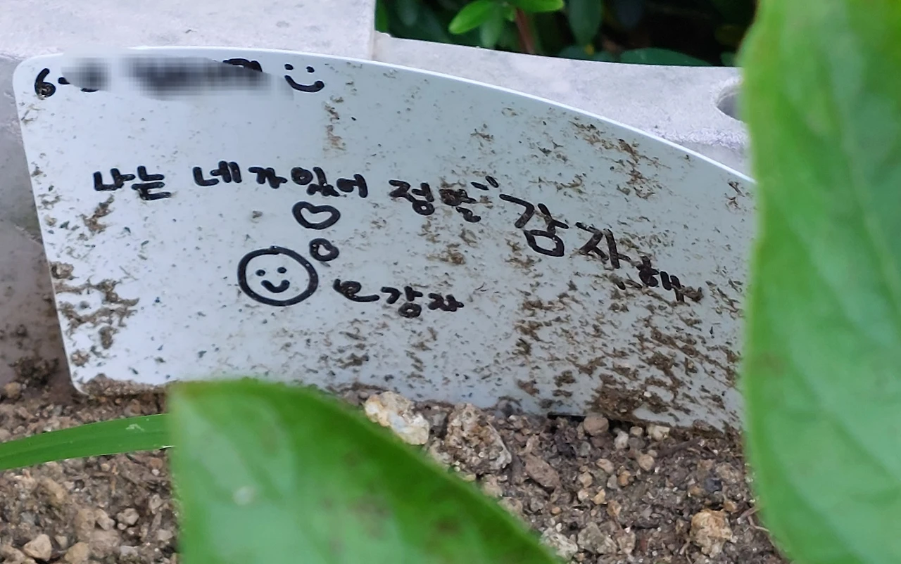 누가 몰래 캐갈까봐 자신이 심은 감자를 '독감자'라고 이름 붙인 어린이. 난 이 팻말의 주인공을 아주 잘 알기에 센스 넘치는 이 문구가 더 생생하게 다가왔다. 언제나 재미있는 생각을 잘 하는 센스넘치는 여학생이다.