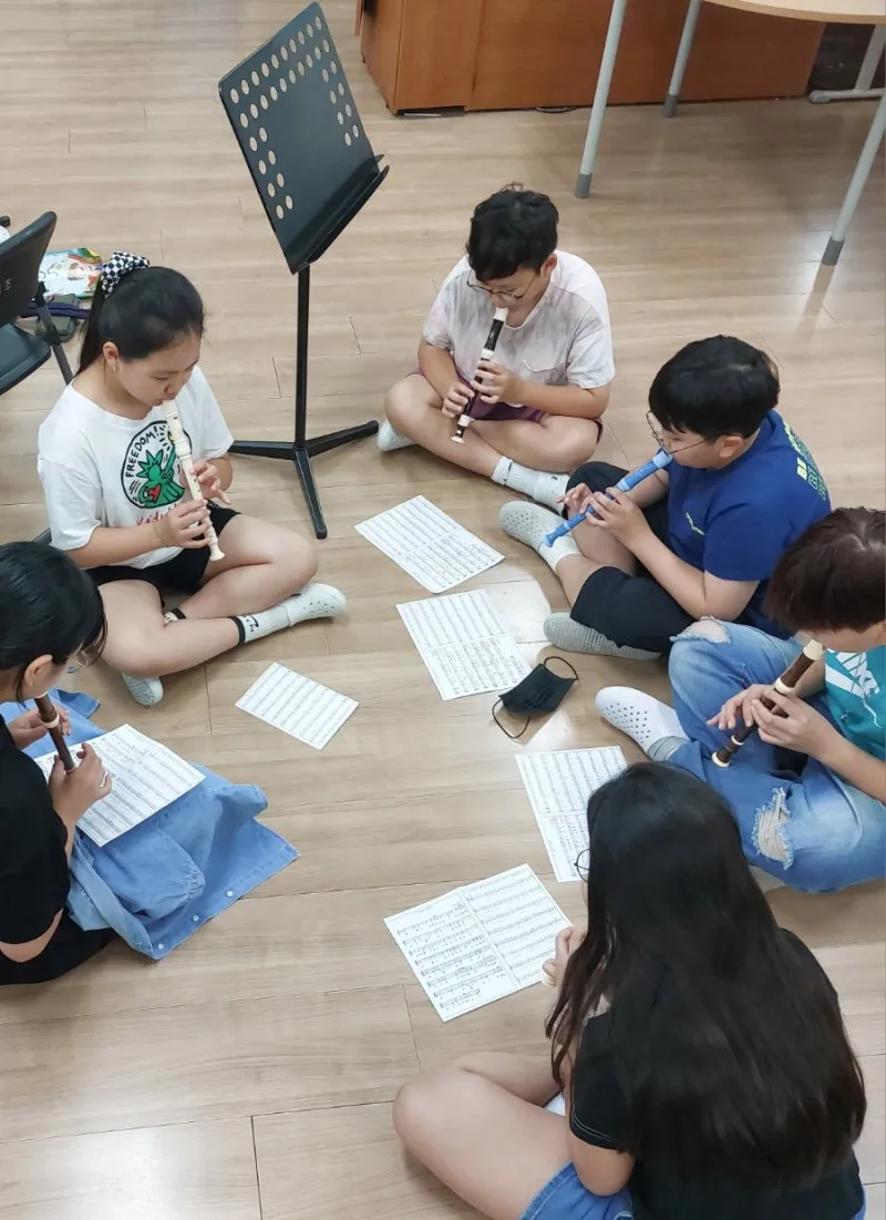 시키지 않았는데도 화음을 만들기 위해 둥글게 모여 앉은 아이들. 음악실 보면대에 개인 악보를 주었는데도 함께 연습한다며 자기들끼리 동그랗게 앉아 합주 연습을 한다. 이 모습을 보고 어떤 선생님이 감동하지 않을 수 있으랴. 다양한 성부의 아름다움을 동시에 느껴보고자 서로의 소리에 집중하는 아이들의 모습. 이 귀하고 소중한 마음을 만났다. 자기가 하는 일에 기쁨을 가지고 몰입하는 아이들을 보는 건 참 행복한 일이다.