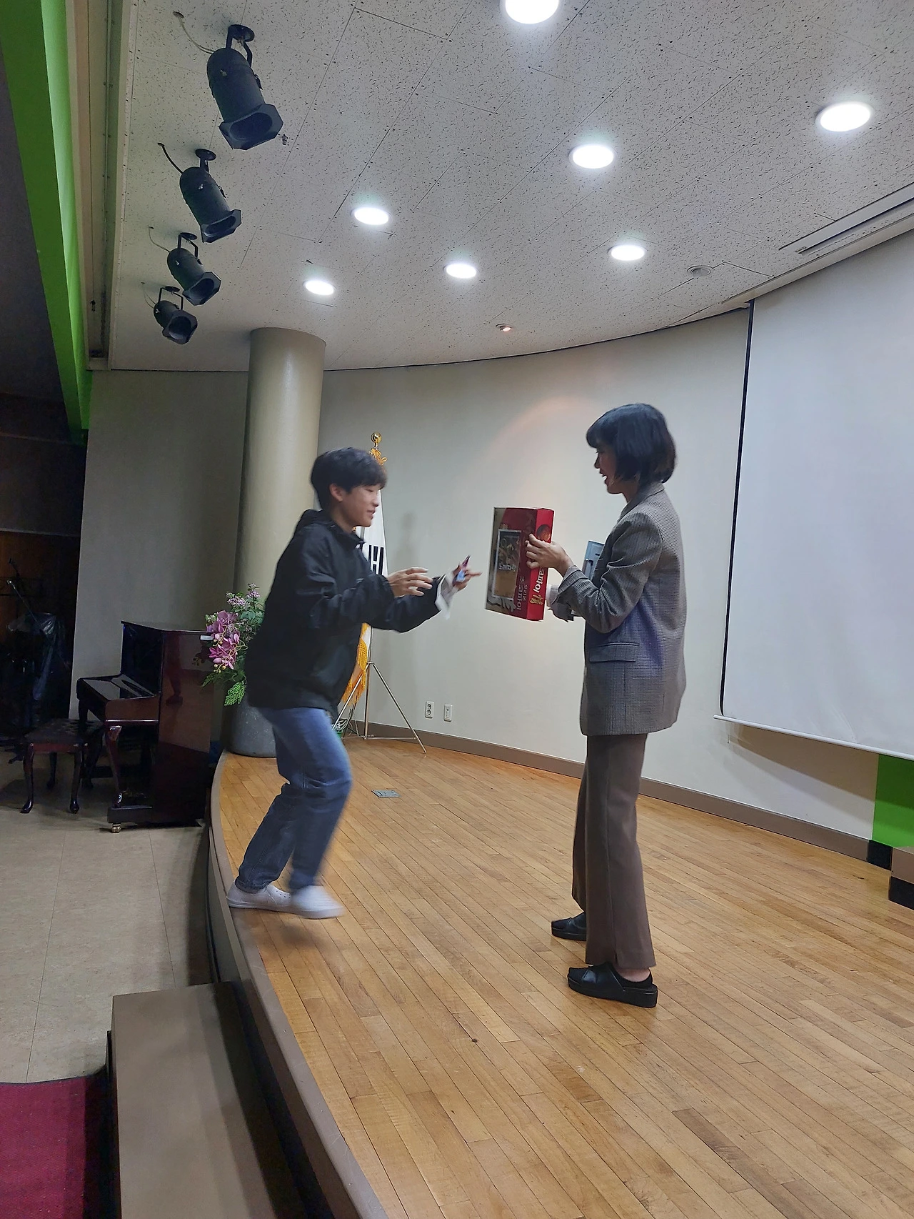 "대박! 너무 좋아요. 혹시 선생님 안 바쁘시면 저희 반 노래자랑할 때 심사위원 부탁드려도 돼요?"