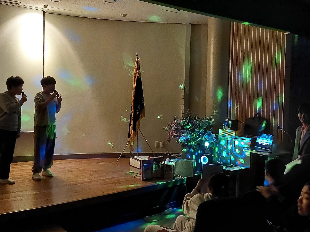 급하게 준비했다고는 하시는데 아이고, 쓰앵님. 미러볼까지 사신 겁니까. 온갖 스트레스란 스트레스는 화끈하게 날려 버리며 즐겁게 노래하고 춤추는 아이들! 마지막은 다 같이 떼창부르기다.