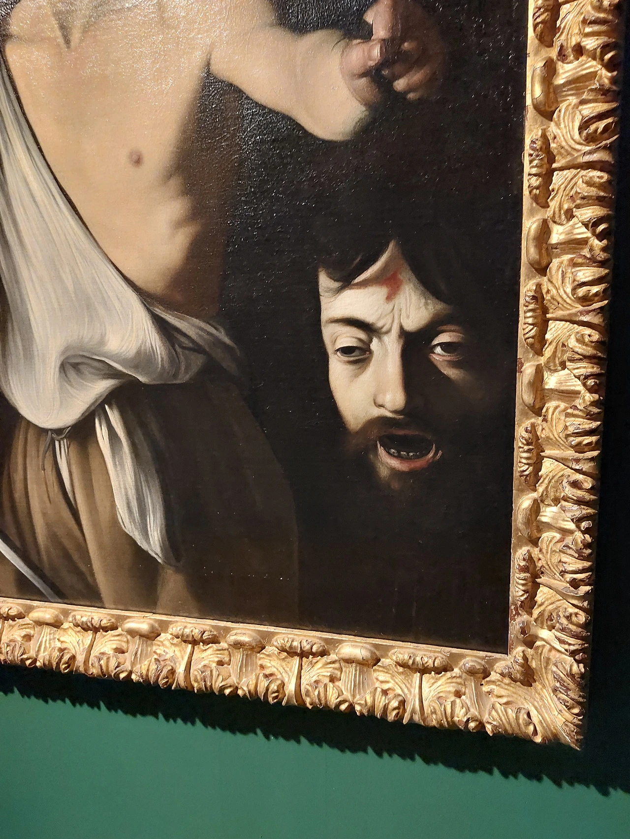 이 그림은 그가 1606년 살인을 저지른 후 그렸다고 한다. 미소년의 얼굴은 과거의 순수했던 모습을 뜻하고 추악한 골리앗은 살인죄를 범한 범죄자가 된 본인을 나타낸거다. 그러면서 과거의 자신이 현재의 나에게 왜 그랬냐면서 후회를 하는 것 같다. 이런 천재같으니라고.