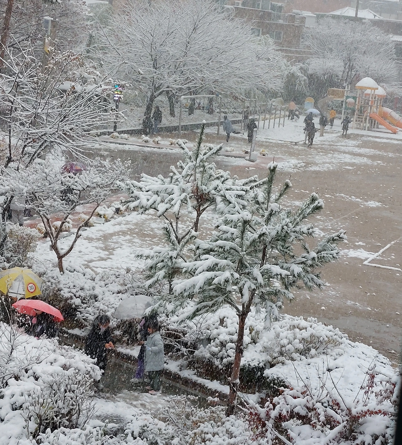 하교 시간이 되었다. 예쁜 눈이 녹아버린 것이 아쉽기만 하다.