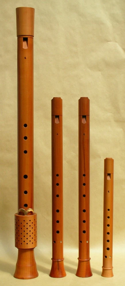 리코더의 모양도 시기마다 조금씩 다르다. 르네상스 시대에는 이렇게 일자형 모양이었던 리코더! 지금 우리가 아는 모양은 바로크 시대에 쓰이던 리코더 모양이라 아래 사진이 낯설게 느껴질 것이다.
