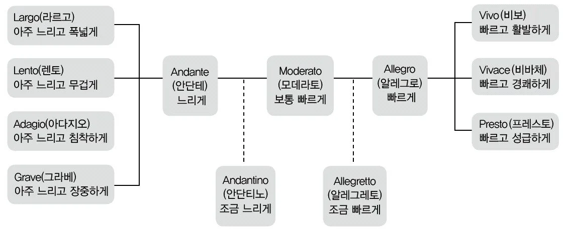 음악 전담으로 아이들을 가르치다 보니 음악 교과서 속 빠르기말이 눈에 확 들어온다. 초등 단계에서는 라르고는 건너 뛰고 아다지오부터 나온다. 라르고는 아다지오보다 더 느리다.