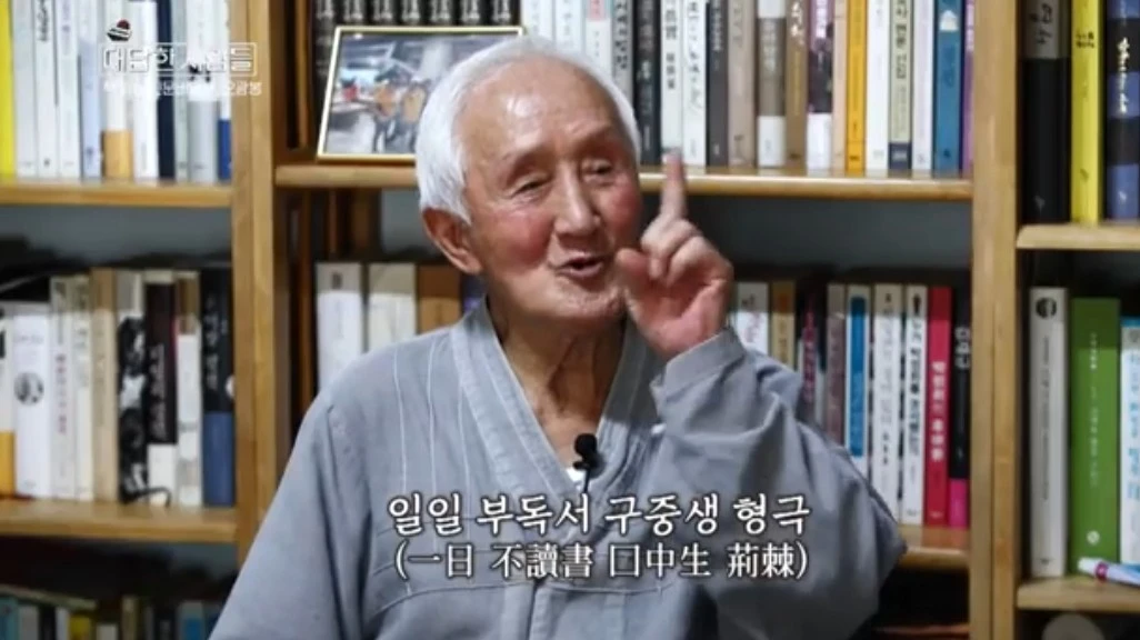 평소 좋아하는 명언이 무엇이냐는 진행자의 질문에 할아버지는 안중근 의사의 一日不讀書 口中生荊棘(일일부독서 구중생형극)을 말씀하셨다. 형극은 가시라는 뜻으로 고난이라고 의역되기도 한단다.
