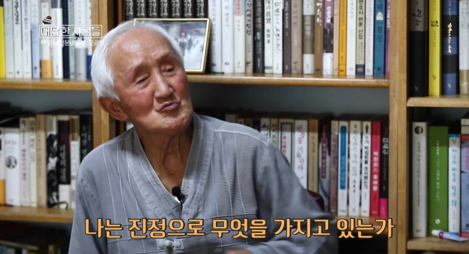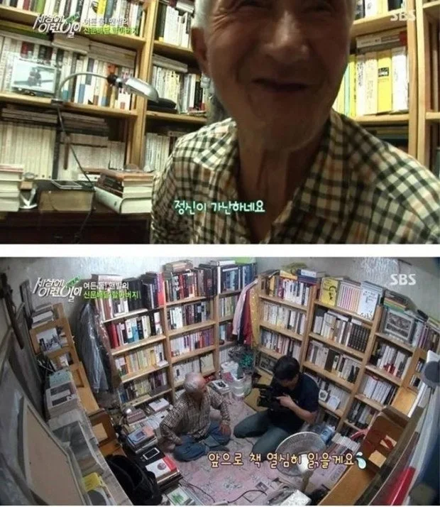 신문배달로 번 돈을 모두 책을 사는 데 쓰신다는 할아버지는 진정한 부자의 미소를 가지고 계셨다. 나중에 검색해서 알았는데 예전에 '세상에 이런 일이'를 찍으러 온 피디에게 몽테뉴 수상록을 읽었느냐고 질문하셨고, 안 읽었다고 하니 '정신이 가난하네요!'이라고 말씀하셨다는 이야기를 하셨다고 한다.