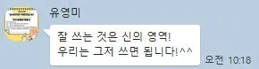밀알샘의 동료이신 해피유쌤은 우리들의 글쓰기 러닝메이트로 매일 아침 카톡방에 글쓰기와 관련된 1일 1 명언을 남겨 주셨다. 보기만 해도 힘이 나는 이러한 문구들은 매일 글쓰기 미션 수행을 가능케 하는 기폭제가 되었다. 또한 다른 선생님들의 미션 인증 글을 읽으며 나도 내 글을 밀리지 않고 써야겠다고 마음을 다잡았다. 해피유쌤 역시 최근 본인의 저서를 출간한 작가이신데 지난 8월부터 글쓰기를 시작하여 본인 스스로의 단독 저서를 2달 만에 썼다고 하셨다. 그분이 연수 첫날 해주신 말씀, "독하게 써라!" 이 말은 내 가슴에 꼭 새겨 놓고 싶다.