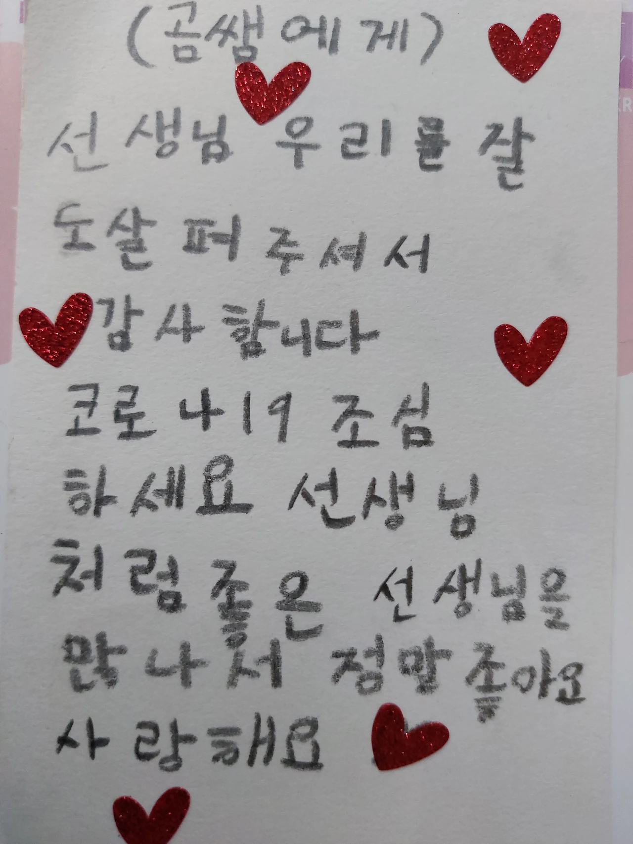 아이들도 그렇지만 한 해 동안 매일 함께 지내던 같은 학년 선생님과 헤어지는 일도 정말 아쉽다. 힘들고 지칠 때 위로해 준 마음들, 함께 기뻐하고 즐거워했던 순간들을 모두를 추억으로 묻어야 한다는 것이 속상하다. 환하게 웃으며 시시콜콜 사소한 이야기를 나누던 그 모습을 이제는 더 이상 볼 수 없다는 것도. 가끔 방학 때 보거나 그마저도 어려우면 몇 년에 한 번, 운 좋으면 만날 수 있는 그런 관계. 또 새로운 만남에 적응하여 처음 만난 선생님들과 웃으며 협력하며 지내야 하는 것이 내성적인 성격에는 참 힘든 일이다.
