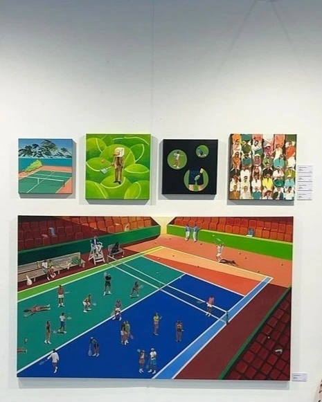 이 분들의 작품이 너무 마음에 들어서 인스타그램을 찾아봤다. 원래는 이런 아무것도 없는 테니스 코트였다. 배경을 먼저 그린 다음 인물들을 배치한 것이로군!