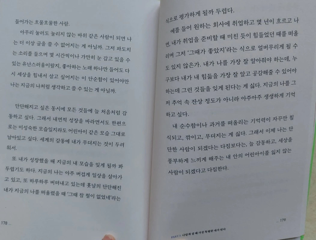 나는 단단하고 싶지 않다. 늘 감동하고 세상을 풍부하게 느끼게 해주는 내 안의 어린아이를 잃지 않는 사람이 되겠다고 다짐한다