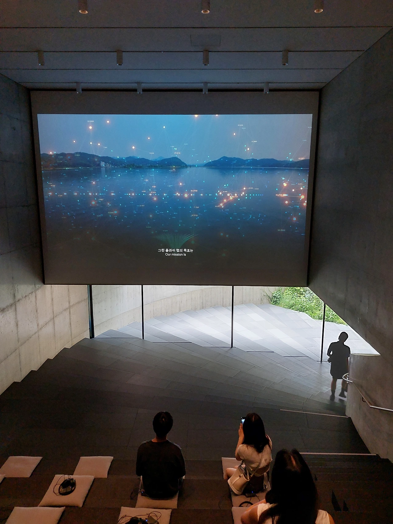 빛, 소리, 조명, 장소, 영상이 한데 어우러져 관객들에게 작가의 의도를 전하는 미디어 아트, 난생처음 미디어아트를 접하니 좀 낯설고 어려운 느낌도 있었다. 그래서 도슨트 설명이 꼭 필요했다. 도슨트 설명을 들은 후 다시 한번 더 재관람을 하면서 작품과 공간이 주는 낯설면서도 새로운 경험이 나의 개인적 사고와 통합되는 것을 느꼈다.
