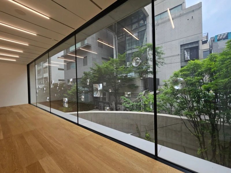 이번 전시에서 가장 재미있었던 부분은 2층 전시실이었다. 전시물의 제목은 '빛나는 기억의 파편들'이다. 너무 멋진 제목 아닌가! 여기에서는 유리에 부착된 렌즈가 쭉 창을 따라 늘어서 있다. 관객들은 이 렌즈를 관찰함으로써 우리가 사물을 인식하는 과정을 직접 체험할 수 있다.
