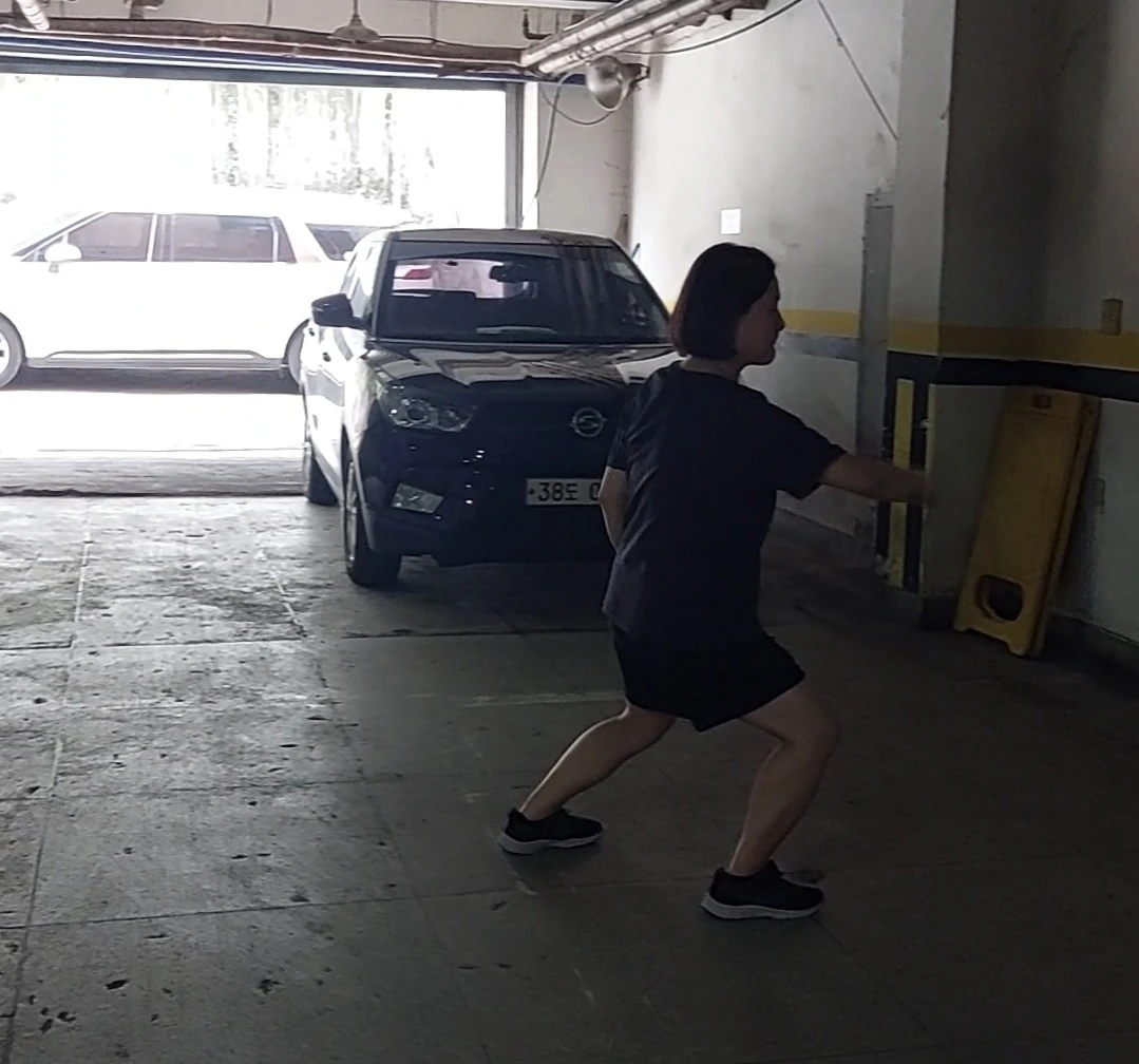 - 등일근 발차기 전 콰 누르고 몸의 탄성 주기