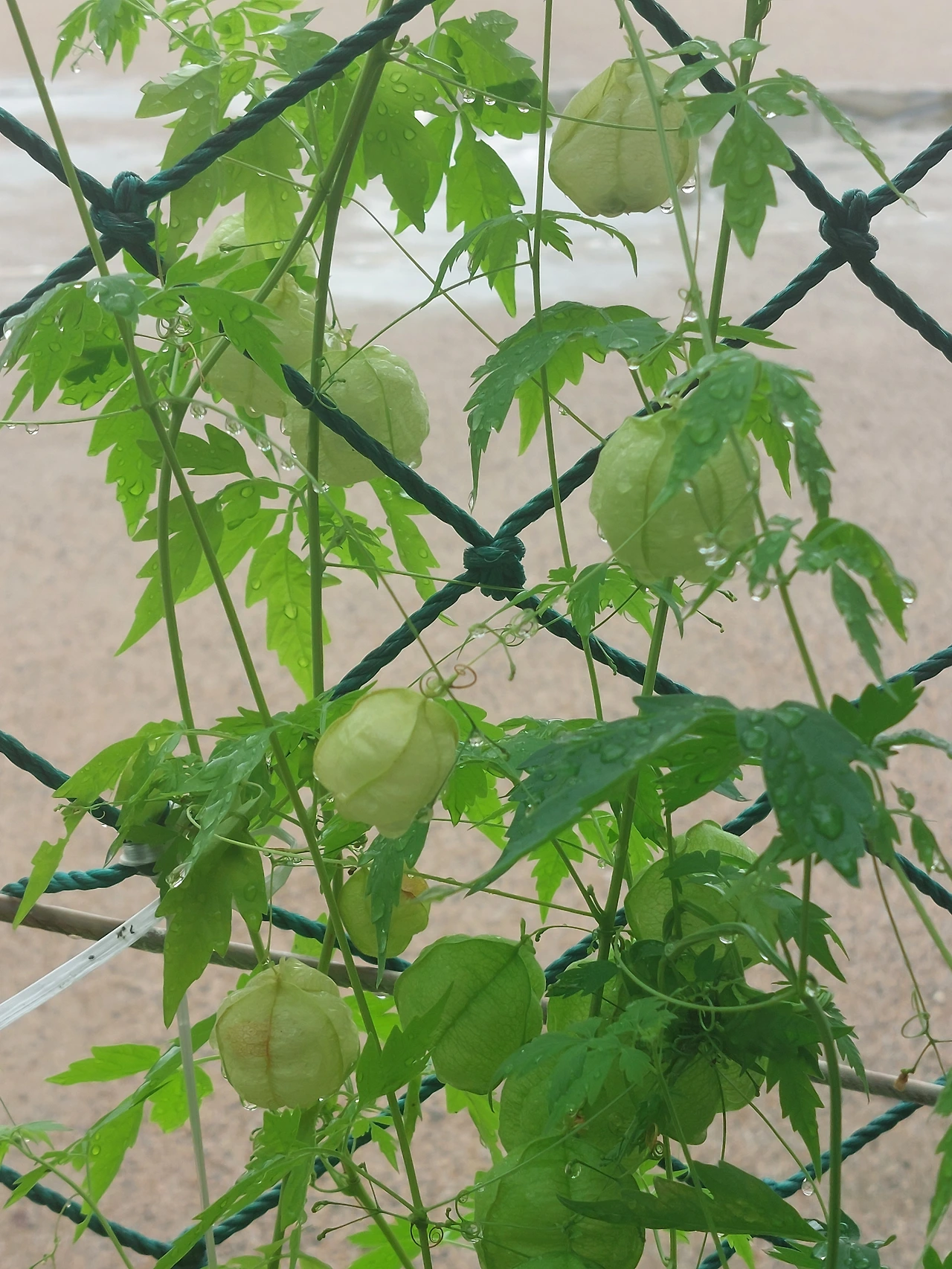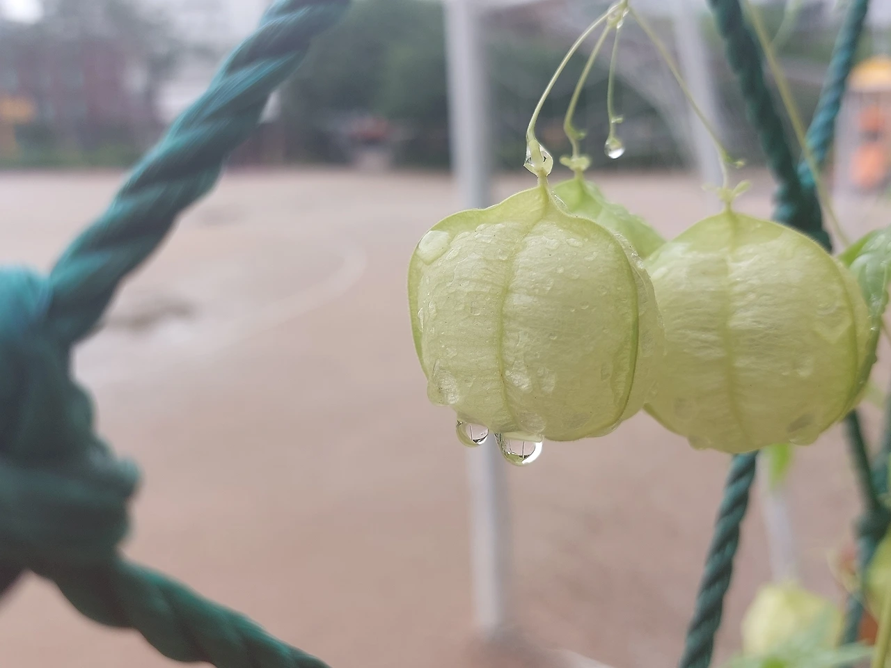 이름 모를 덩쿨 식물이 운동장 축구 골대 뒤에 오밀조밀 모여 있다. 꼭 무슨 풍선 주머니 같은 모양이다.