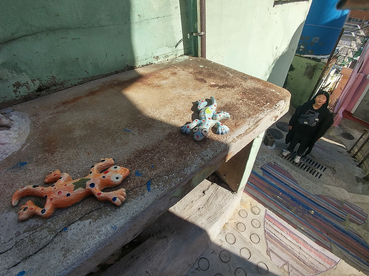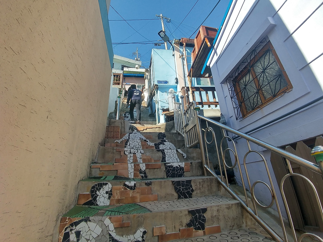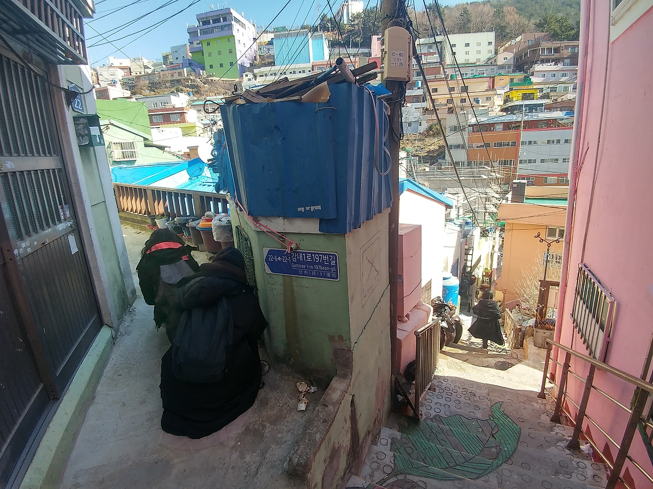 차들이 다니는 대로를 걷다가 골목으로 내려가니 달동네로 불릴 감천 산동네는 외국의 여느 관광지 못지않은 전망과 꾸며진 색깔로 사람들이 카메라 셔트를 누르게 한다. 특별한 몇 곳은 인생 샷을 찍으려는 사람들로 줄까지 서는 포토존도 보인다.
